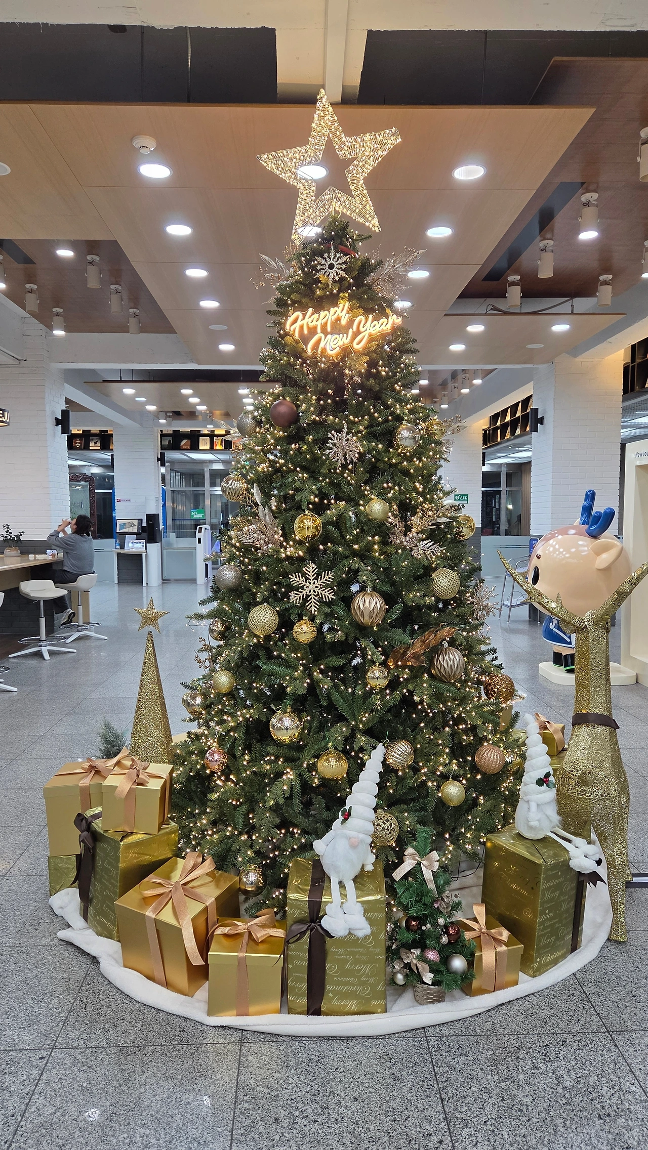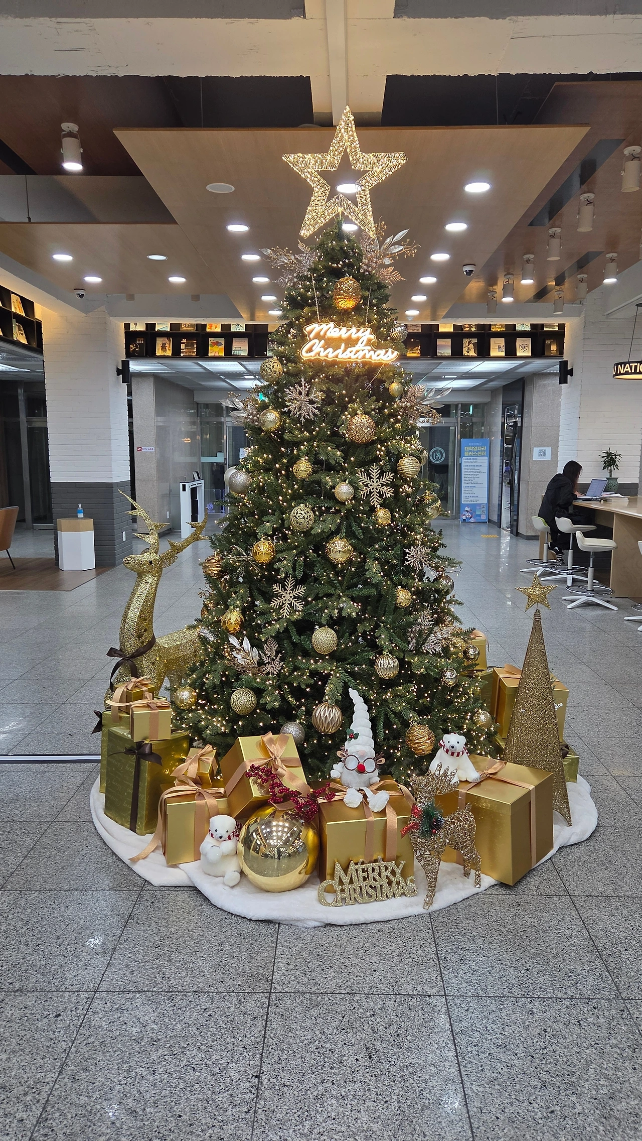 어젯밤에는 없던 크리스마스트리가 하루새에 도서관로비에 설치되어 반짝반짝 빛을 낸다.