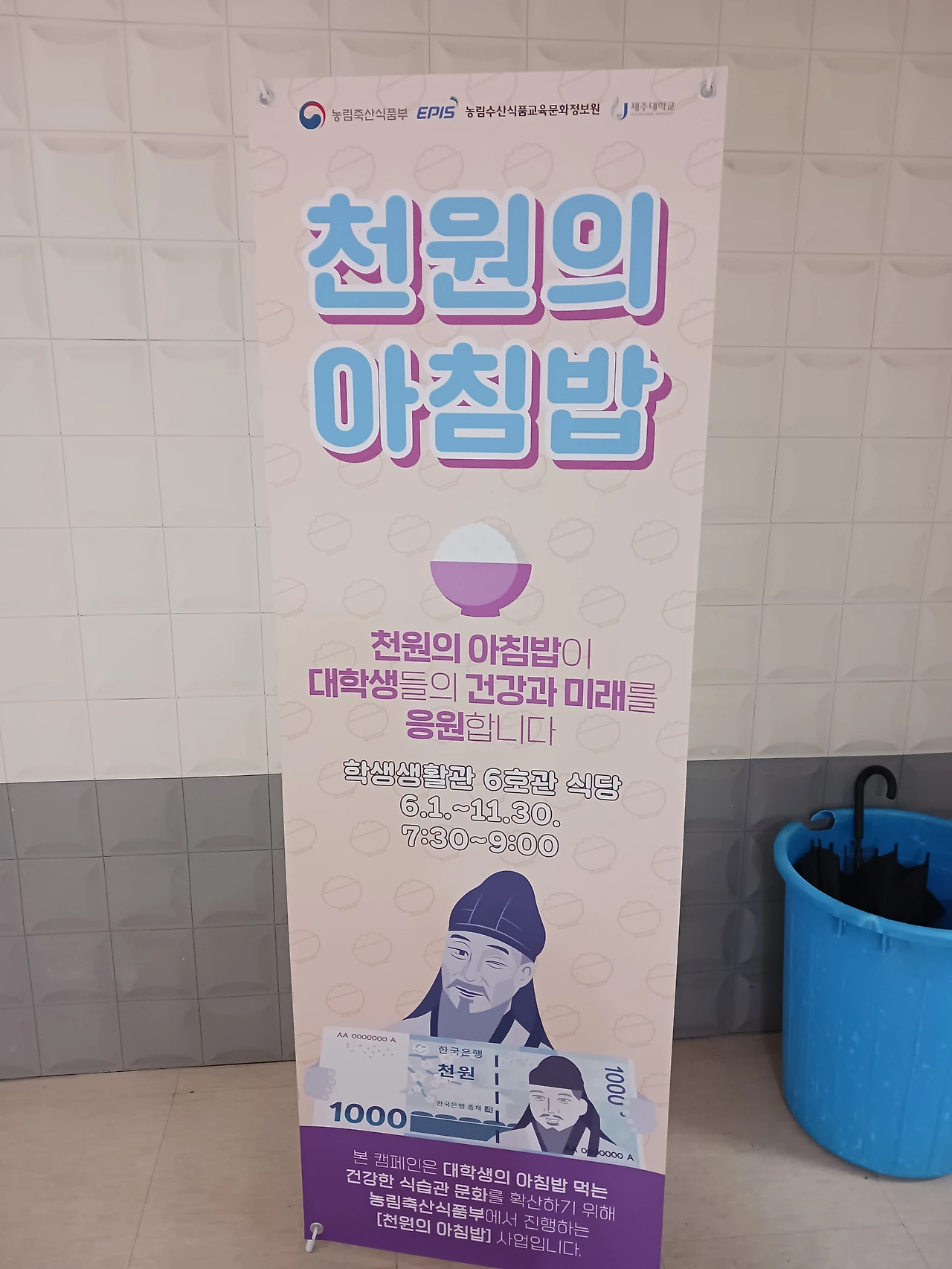 천 원의 아침밥은 대단한 유혹이다. 천 원에 밥을 먹을 수 있는 것, 큰 행복이다. 8시 30분에는 밥을 받을 수 있도록 집에서 7시 40분에 나왔다. 운동하고 밥 먹고 도서관에 자리 잡고...... 정말.... 이런 일상을 내가 이어갈 수 있기를..... 소망한다.