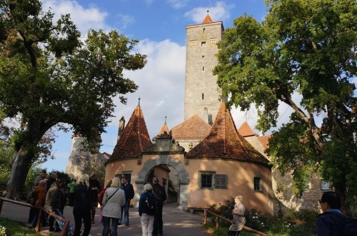 1274년 ‘자유 제국 도시’로 지정된 로텐부르크는 돌로 된 성벽 안에 구불구불한 자갈길 골목과 아름다운 건물들이 즐비해 있다. 전설에 따르면 이 도시는 신성로마제국의 사령관 틸리가 이곳 시장과 벌인 와인 마시기 시합에서 시장이 3.25L에 달하는 와인을 한 번에 들이켜 신교도와 구교도의 30년 전쟁에서 피해를 입지 않았다고 한다.