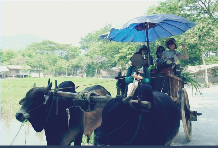 태국에 와서 소 달구지를 타다니, 조금 엉뚱했지만 오히려 어릴 적 고향에서 소가 끄는 달구지에 올랐던 기억이 되살아나 마음이 동심으로 물들었다.