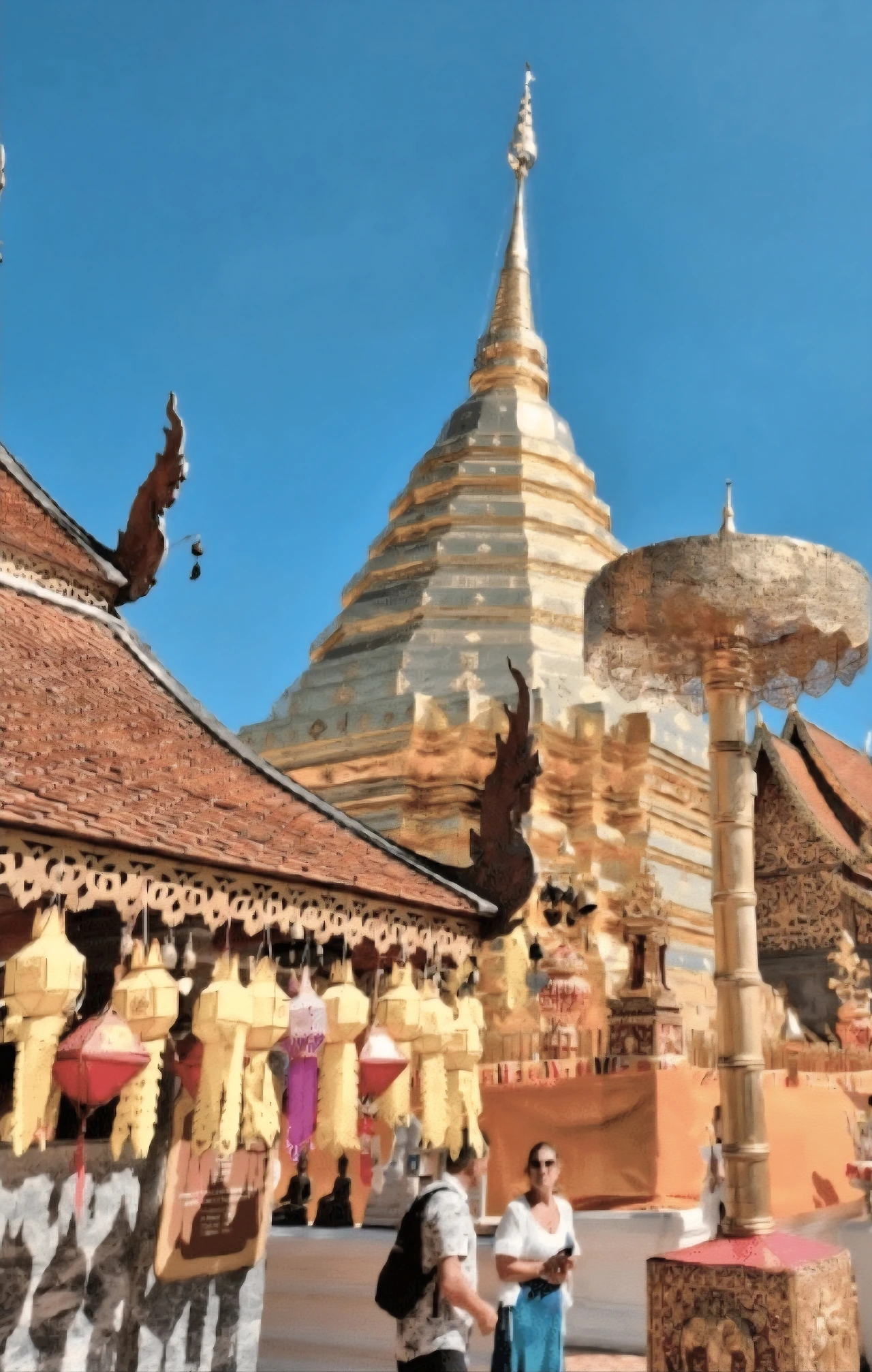 결국 빈손으로 마을을 떠나 도이수텝 사원에 도착했다. 사원은 온통 황금빛으로 웅장하게 빛나고 있었다. 하지만 웅장한 사원아래 입구에는, 전깃줄이 뒤엉켜 있었다. 장엄함과 세속이 한눈에 겹쳐 들어오자, 묘한 기분이 스쳤다.