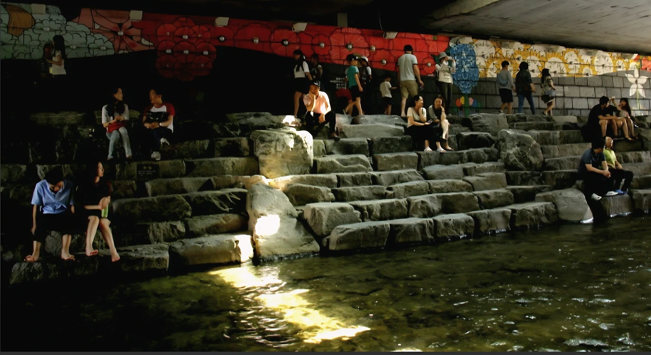 아름답다고 여러 번 들었던 청계천. 막상 마주하니 조금은 다르다. 특별한 무언가보다는, 그냥 평범한 실개천 같았다. 하지만 여름 한낮, 그 얕은 물속에 발을 담그며 웃고 있는 사람들의 모습이 청계천을 특별하게 만들고 있었다.