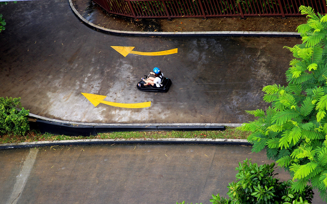 누가 아줌마들이라고 했나. 헬멧 쓰고 달리기 시작하자, 비명 반, 웃음 반, 경쟁심도 충전시키며 완전무장하고.