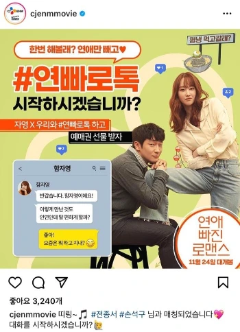 CJ E&M은 <연애 빠진 로맨스> 개봉 2주 전인 11월 9일, 카카오톡 챗봇을 활용하여 사용자가 영화 속 캐릭터와 대화할 수 있는 '연빠로톡'을 공개했다. 또한 지정 기간 동안 연빠로톡에 참여한 소비자에게 추첨을 통해 해당 영화 예매권을 증정하는 이벤트를 진행하여 챗봇 대화 참여율을 높였다.