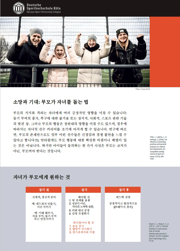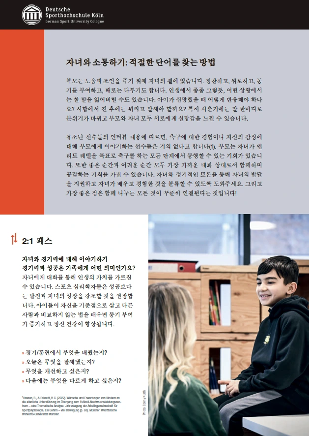 2024년 1월 25일, 독일 프로축구 연맹(DFL)과 독일 축구 협회(DFB)가 협업하여 프로 산하 유스 클럽 선수 자녀를 둔 학부모를 위한 브로슈어를 만들었습니다. 유소년 선수 자녀를 둔 학부모를 위한 지침서로 도움이 될 수 있기를 바라며 한국어로 옮겼습니다.