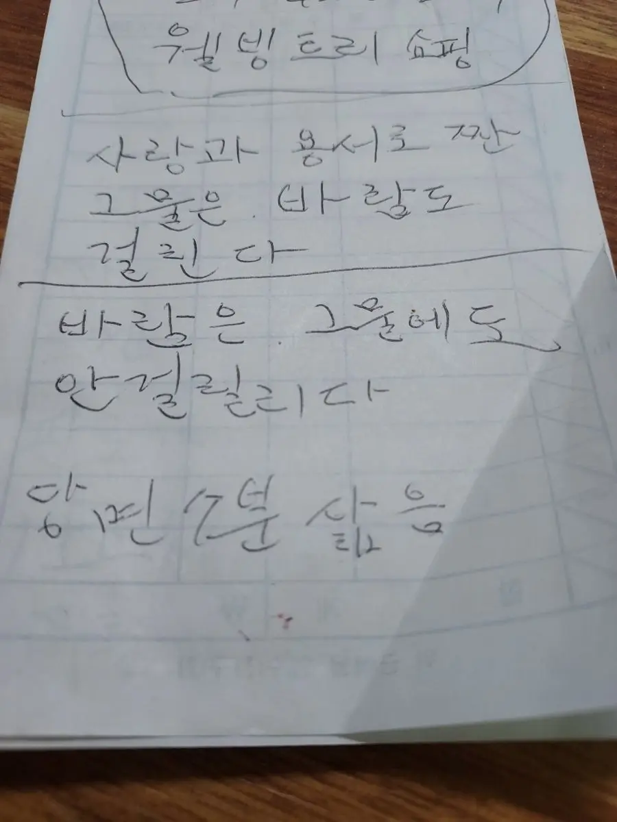 TV나 유튜브를 보시다가 메모하셨을 건데 어머니는 누구를 떠올리며 끄적이셨을까