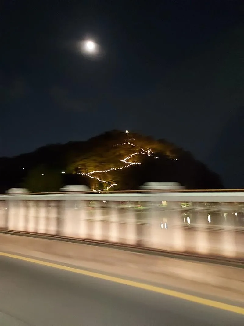 더 좋게 찍은 사진이 있을 텐데 지금 좀 시간이 없다. 목적지인 봉우리로 향하는 그 길을 환한 빛이 비춘다. 가장 크게 그 길을 비추는 빛은 달빛이네?