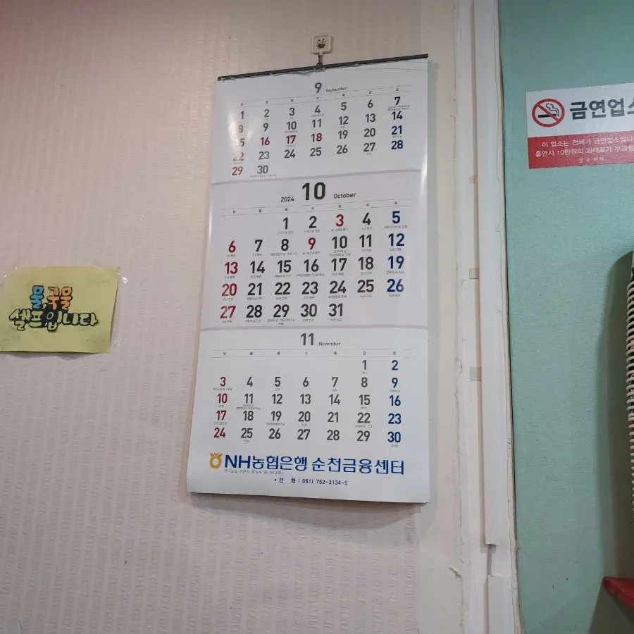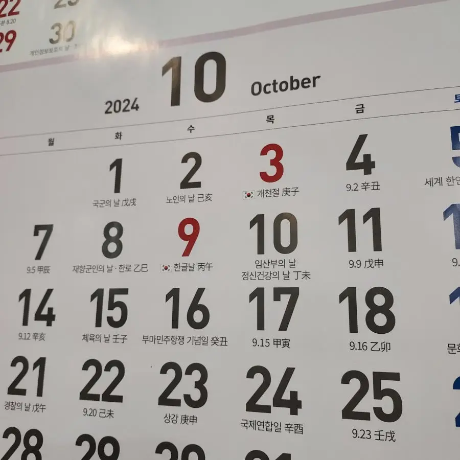 "엄마, 제육의 날이 10월 15일이네요, 봐요~ 달력에 그렇게 적혀 있잖아요."