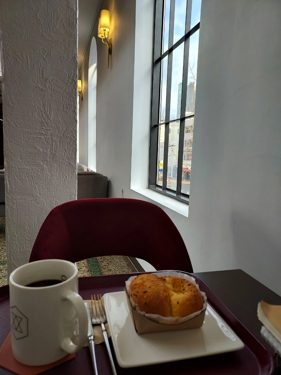 나는 아침에 첫 손님으로 이 카페에 왔단다