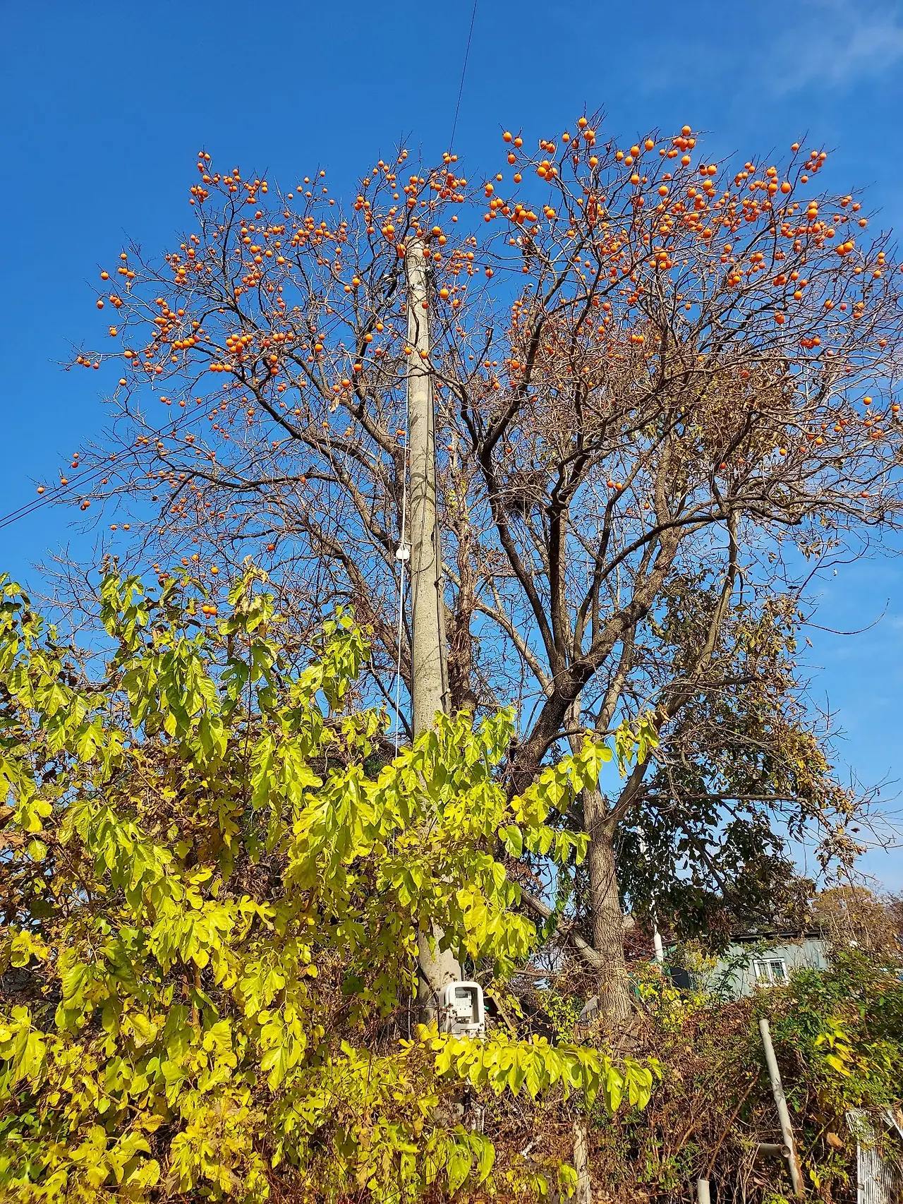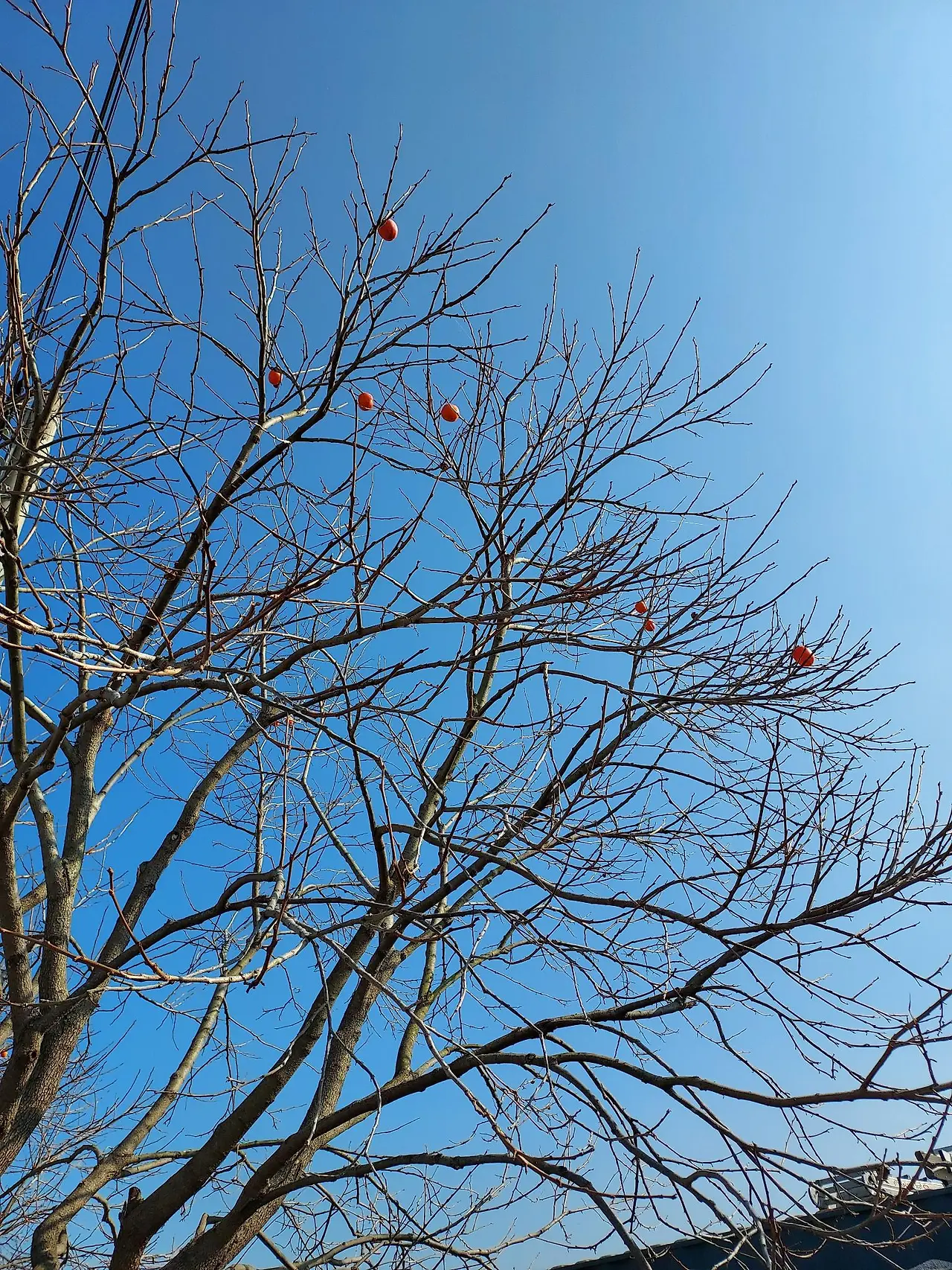 감나무 가지에 주렁주렁 매달린 홍시들을 봤다