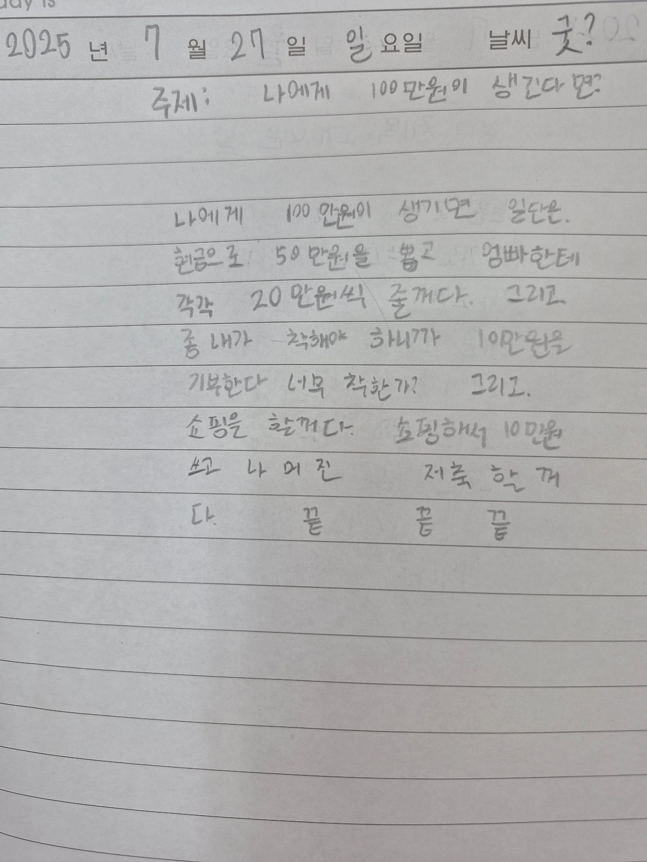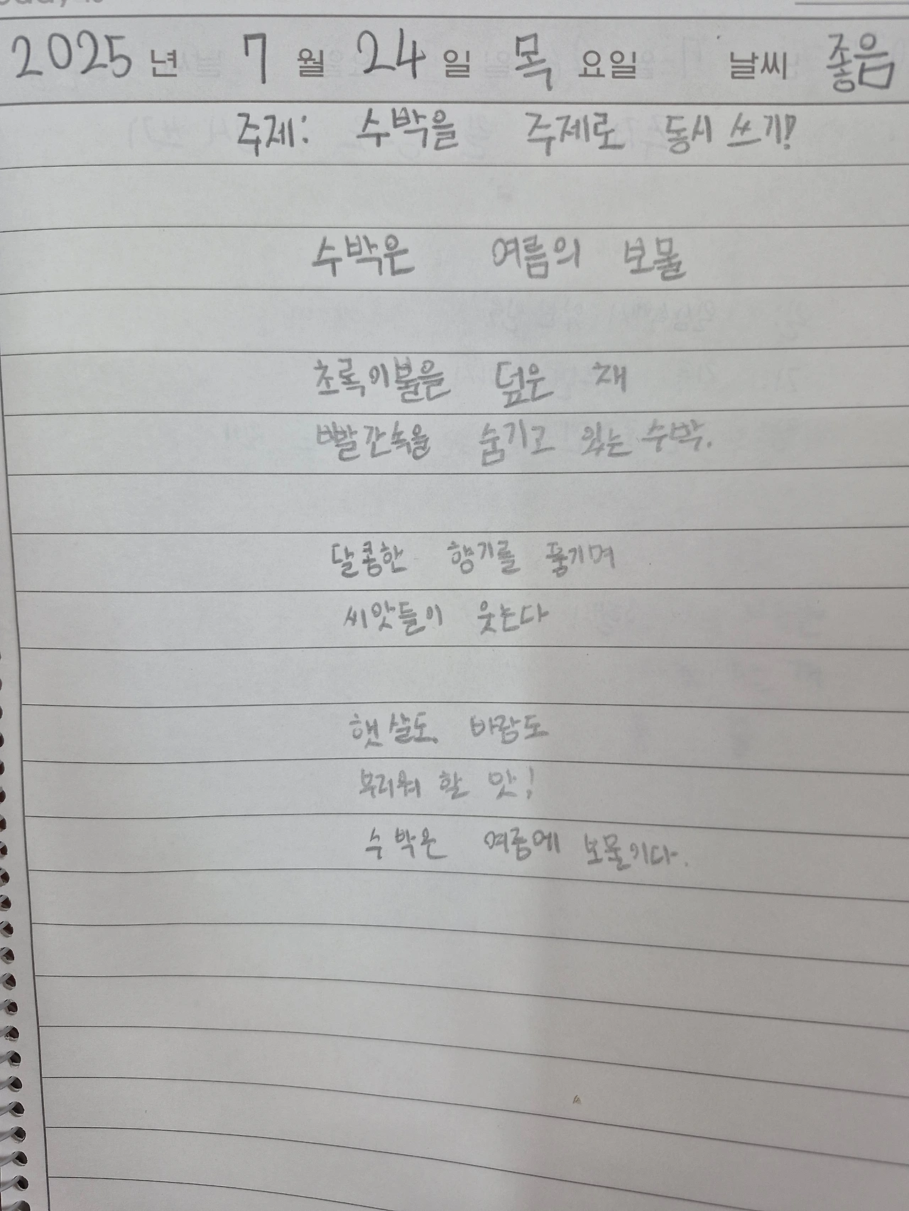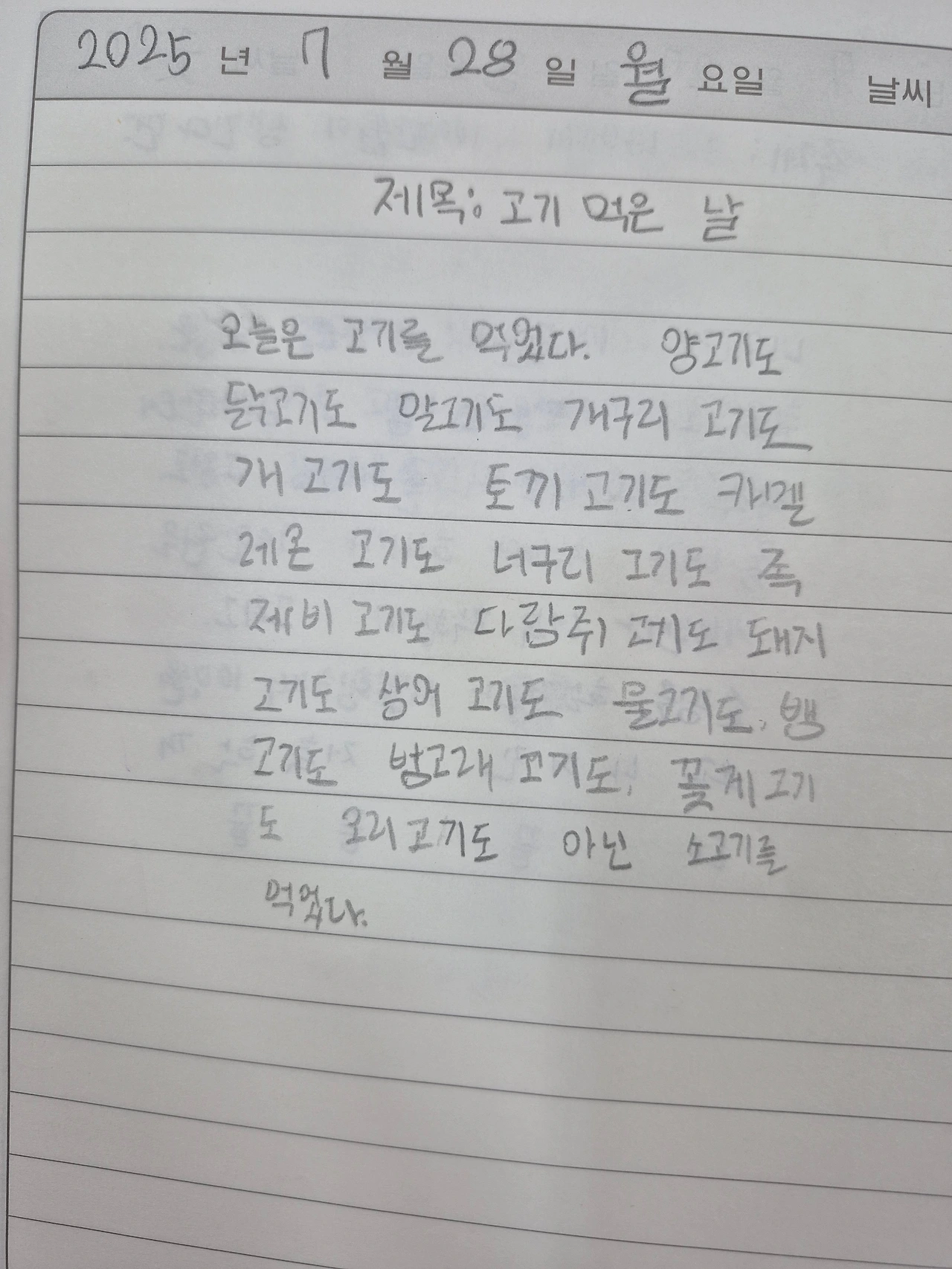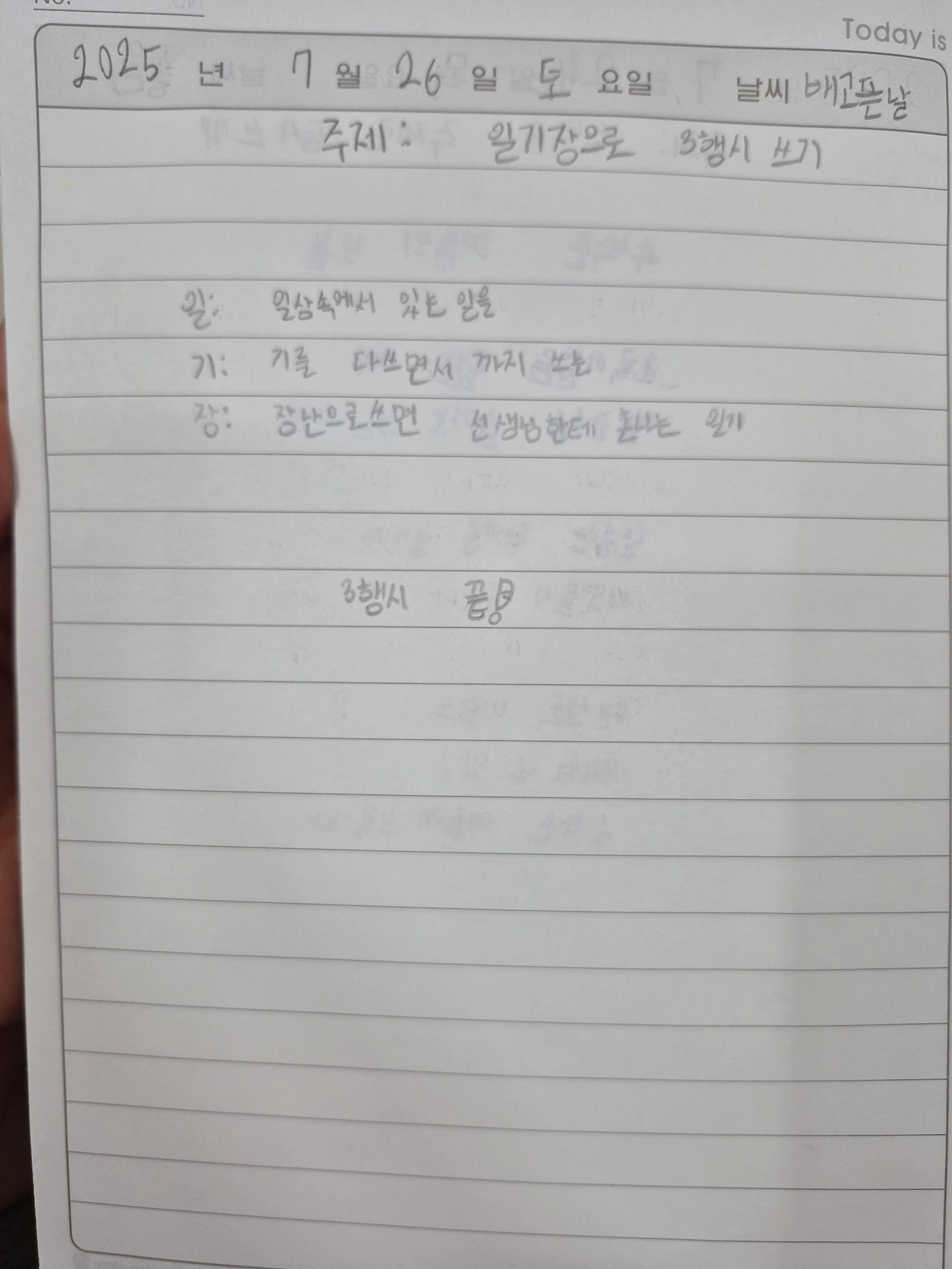 우연히 딸아이 방학숙제 중 일기장을 보았다.