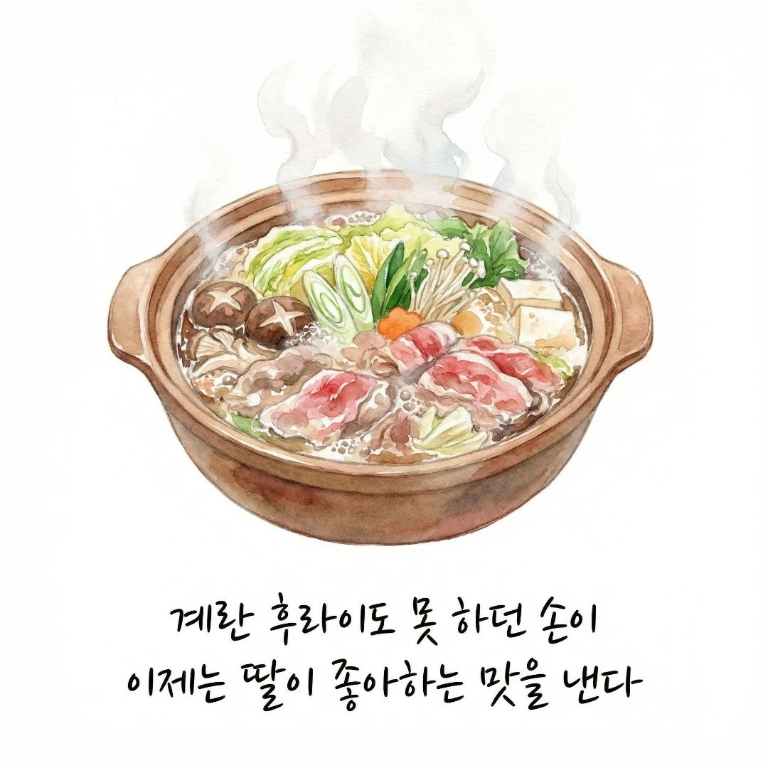 새로운 것을 배울 때 가장 괴로운 순간이 있다. 못난 나를 마주하고 그 시간을 견디는 것. 일에서는 누구보다 능숙했던 사람이 집에서는 초보가 된다. 익숙한 세계에서 날아다니던 사람이 가정 앞에서 초보가 된다. 계란 프라이 하나 못 구워서 나에게 물어보던 아버지가 이제는 주말마다 샤브샤브를 끓여주신다. 내가 좋아한다는 걸 알고 있으니까.