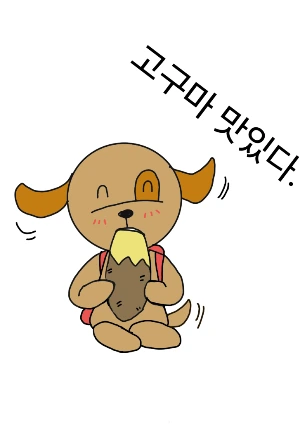 멍곰이는 아침밥으로 맛있는 고구마를 아작아작 먹었어요.