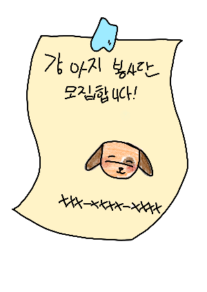 강아지 봉사단을 모집한다는 공고를 완성했어요.