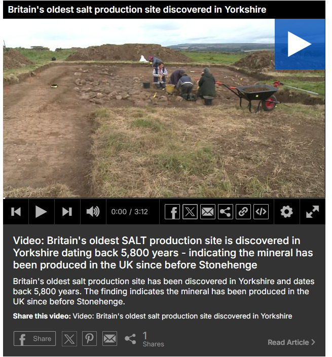 5,800년 전, 대략 bc 4000년 경 이면 신석기에서 청동기로 넘어가는 시기로 이때 4대 강 주변 고대문명이 발생하던 시기 즘이라고 볼 수 있을 것 같다. 이 당시에 소금 생산을 위해 마을 단위로 모여 살았던 흔적을 발견한 것.