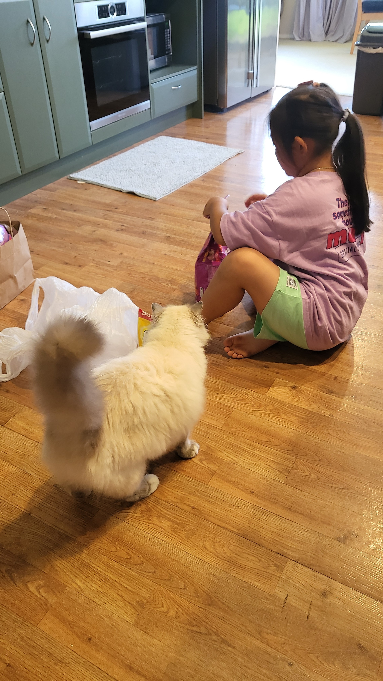 "우리 머피 잘 지내지? 너 집에 고양이 화장실 있어? 없으면 사지 마. 그래도 내가 가족인데, 너희 집에 고양이 화장실까지 두면 머피는 이제 우리 집 안 올 거야. 두 집을 셰어 하며 사는 건 괜찮지만 영원히 우리 집에 안 온다면 나의 아이들이 너무 슬퍼할 거야. 우리 애들이 종종 너희 집에 가도 될까? 우리 둘째가 머피를 좋아하거든. 너의 딸도 우리 집에 놀러 와도 좋아."