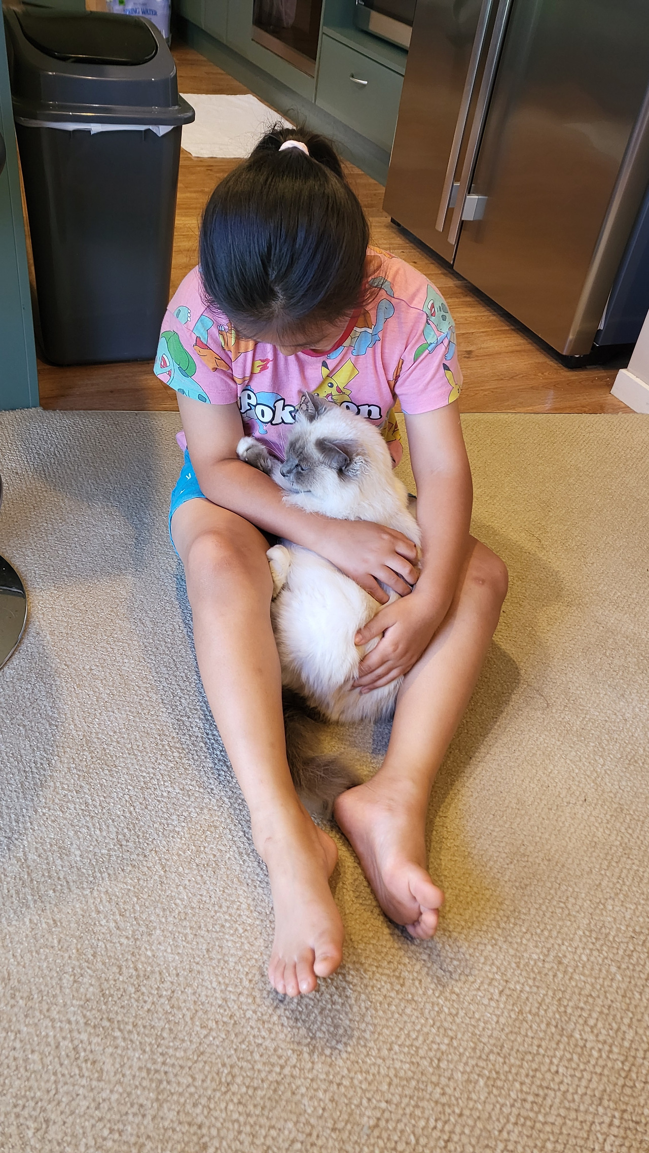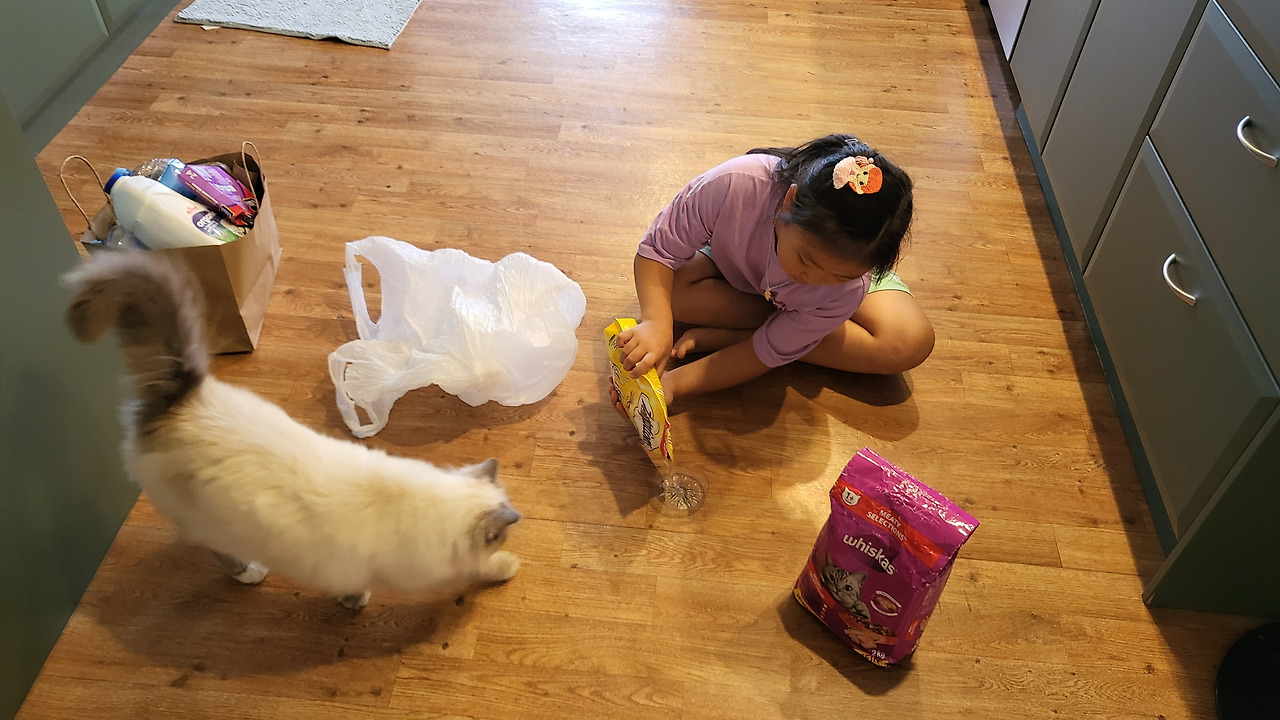 쪼로미 셋이 와서 항상 둘째가 고양이를 안고 간다. 그러면 10~20분 뒤면 어김없이 캣도어 문을 열고 집안으로 들어온다. 그렇게 두 시간 정도 지나면 누가 또 문을 쾅쾅 두드린다. 나가보면 이웃집 남매가 와있다. 몇 번 고양이를 찾으러 오다 보니 이제는 나의 집에 들어와서 나의 딸과 함께 놀다가 간다. 머피 덕에 자연스럽게 나의 딸은 동네 친구들이 생긴 것이다. 학교에서 만날 때는 반갑게 인사를 나누고, 머피의 안부를 묻는다. 나의 딸이 머피 덕에 학교에서 친한 언니가 생겼다고 얼마나 기뻐하던지. 머피는 여러모로 좋은 가족이다. 한 번은 학교에서 선생님 때문에 속상해서 집에 돌아온 적이 있다.