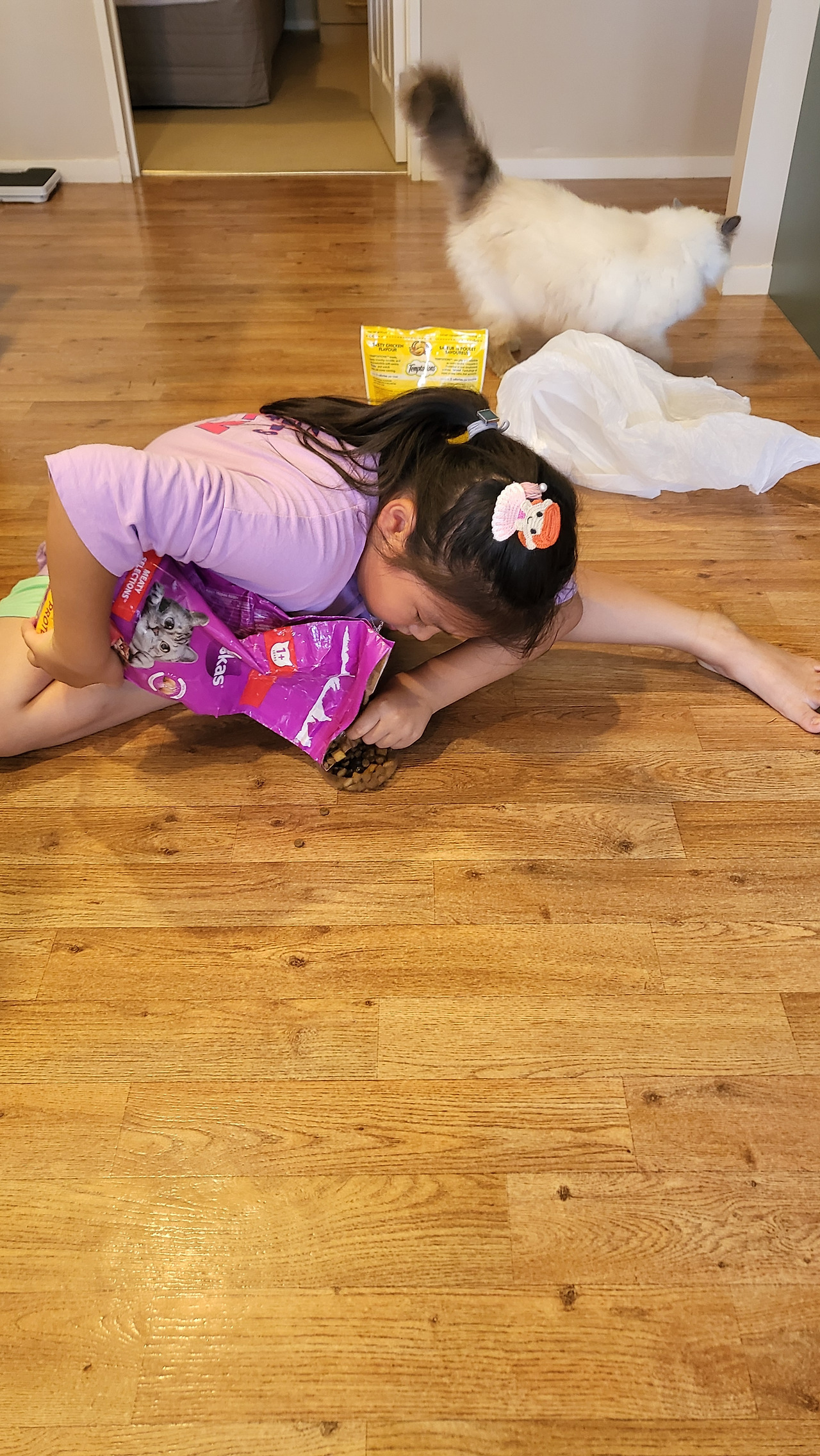 "머피 있어요? 아빠가 데리고 오래요. 안 그러면 고양이가 우리 가족에게 안 올 것 같데요. 그리고 머피가 우리 집에서 똥, 오줌만 싸고 가요."