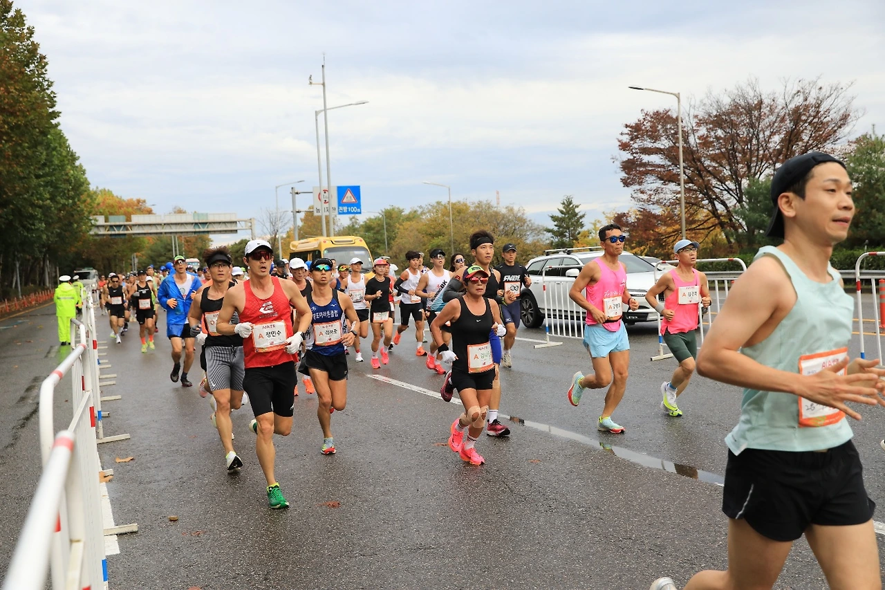 서울하늘에서 만난 비와 당신의 이야기 종아리의 불평은 주변의 응원과 경기에 집중하다 보니 그 통증의 아우성은 작아졌다. 매 7k마다 higefive 카페인 에너지젤을 섭취해 주었다. 예전에는 8.5k에서 섭취를 했었는데, 모든 사람의 신체구조와 상황이 다르고 매번 퍼짐을 경험하다 보니 사전30km 훈련 시 섭취시간을 당겨보았더니 효과가 있어서 요즘에는 7k마다 섭취를 해주었다. 이번에 준비한 에너지젤은 총 4개 부족한 2개는 하프지점에서 나눠주는 아미노샷으로 대체하기로 했다. 흥인지문을 지나, 신답역으로 지나가는 길목에서 하늘은 점점 흐려지고 있었다. 곧 비가 올 것을 직감하였다. 추적추적 내리는 비는 검푸른 아스팔트 바닥에 크고 작은 웅덩이를 만들어 내었다. 조금이나마 물이 적게 들어오게 하기 위해 목포의 마라톤전설 황서브님께서 알려주신 신발테이핑 꿀팁도 무용지물이 되었다. 신발로 둘러싸인 내 발은 심해 깊은 곳으로 추락하는 타이타닉호처럼 서서히 젖어갔다. 하늘에서 내린 비는, 긴 모자창을 피해 얼굴을 때렸다. 오랜만에 비오늘날을 뛰다 보니 교복 입고 폭우 속을 질주 하던 고등학교 시절이 생각이 나서 즐거웠다. 비가 내리는 동안은 왠지 모르게 큰 기억이 없고 너무 빠르게 지나갔다.