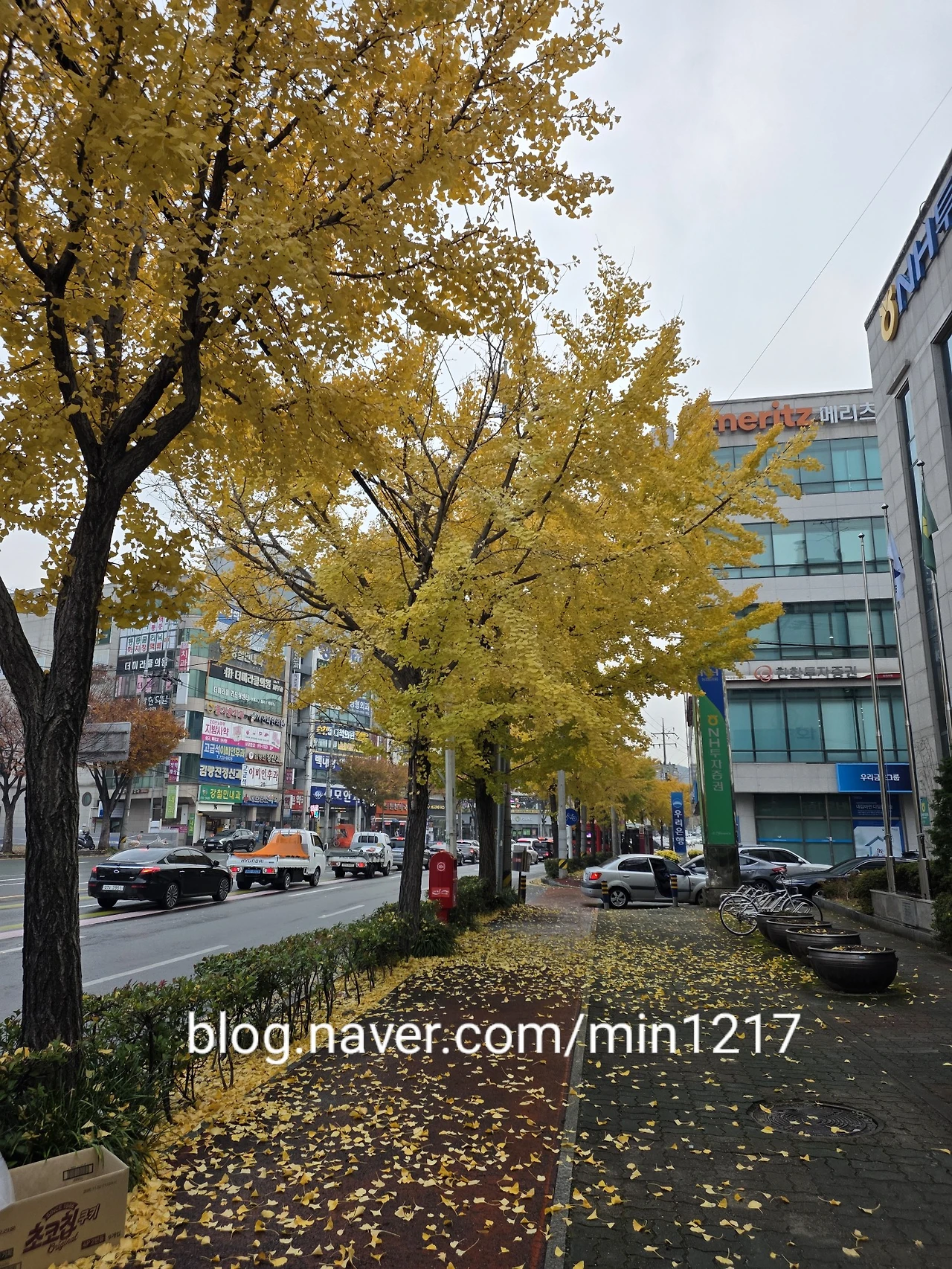 거리 나무들은 아름드리 하늘을 향해 아름다움을 뿜어 대고 아파도 나무 꽃으로 물들이고 들리지는 않지만 행복해 보는 색깔로 좀 더 매달려 있고 싶은데 겨울은 뭐가 그리도 급한지 재촉하는 비가 내리고 있다 보다.
