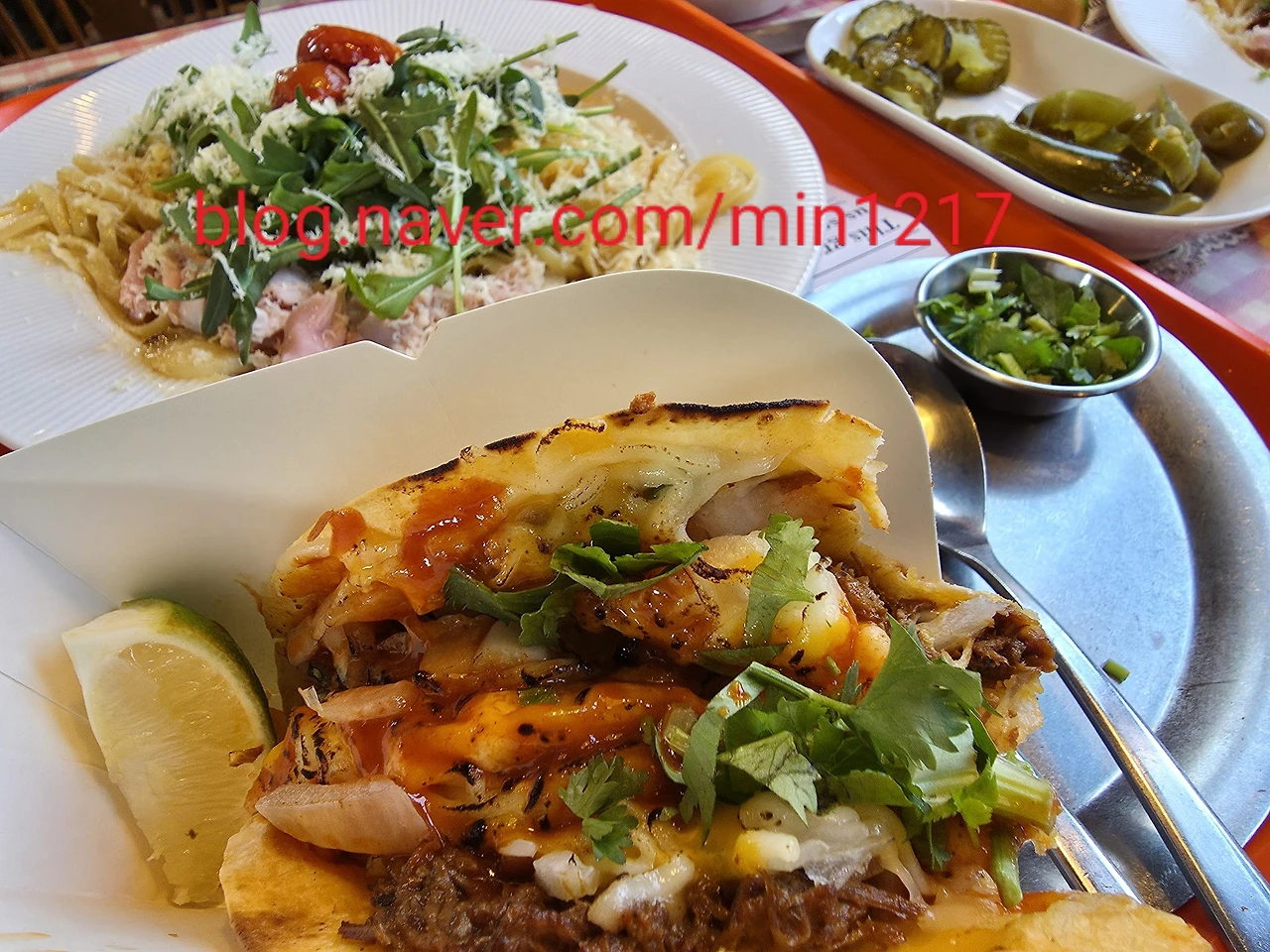 타코라는 요것은 비리가 타코로 육즙 가득한 부드러운 고기의 식감이 풍성한 핫 칠리 타코입니다. 친절하시다. 너무 잘 알려주신다.