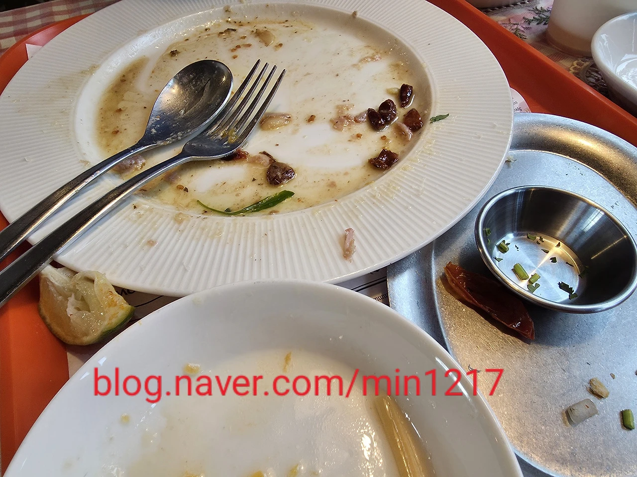테이블 차지 하고 앉아 대화 없이 눈으로 감탄하고 입으로 먹고 남은 접시는 텅 빈