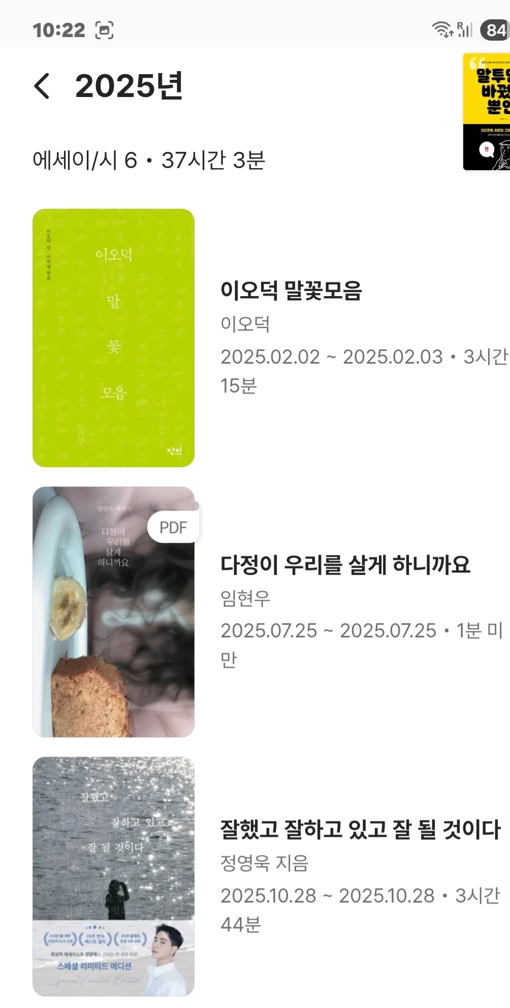 두 번밖에 읽지 못함 틈틈이 다른 책도 읽고