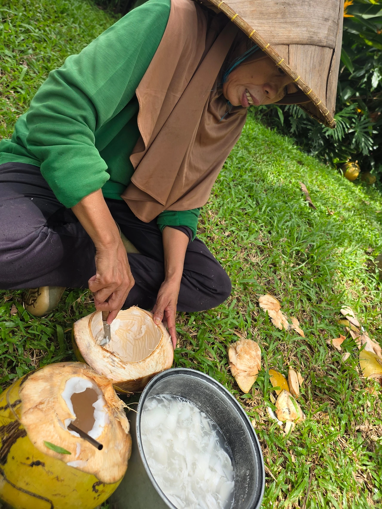 더운 지역에서 갈증 해소용으로 인기 칼로리는 낮고, 칼륨이 풍부하다 수영을 열심히 하고 빨대 하나 꽂아서 마시는 기분은 수영 후 나의 갈증을 해소할 수 있었다 살짝 단맛, 아주 깔끔한 맛은 인도네시아 어떤 음료보다 맛있다