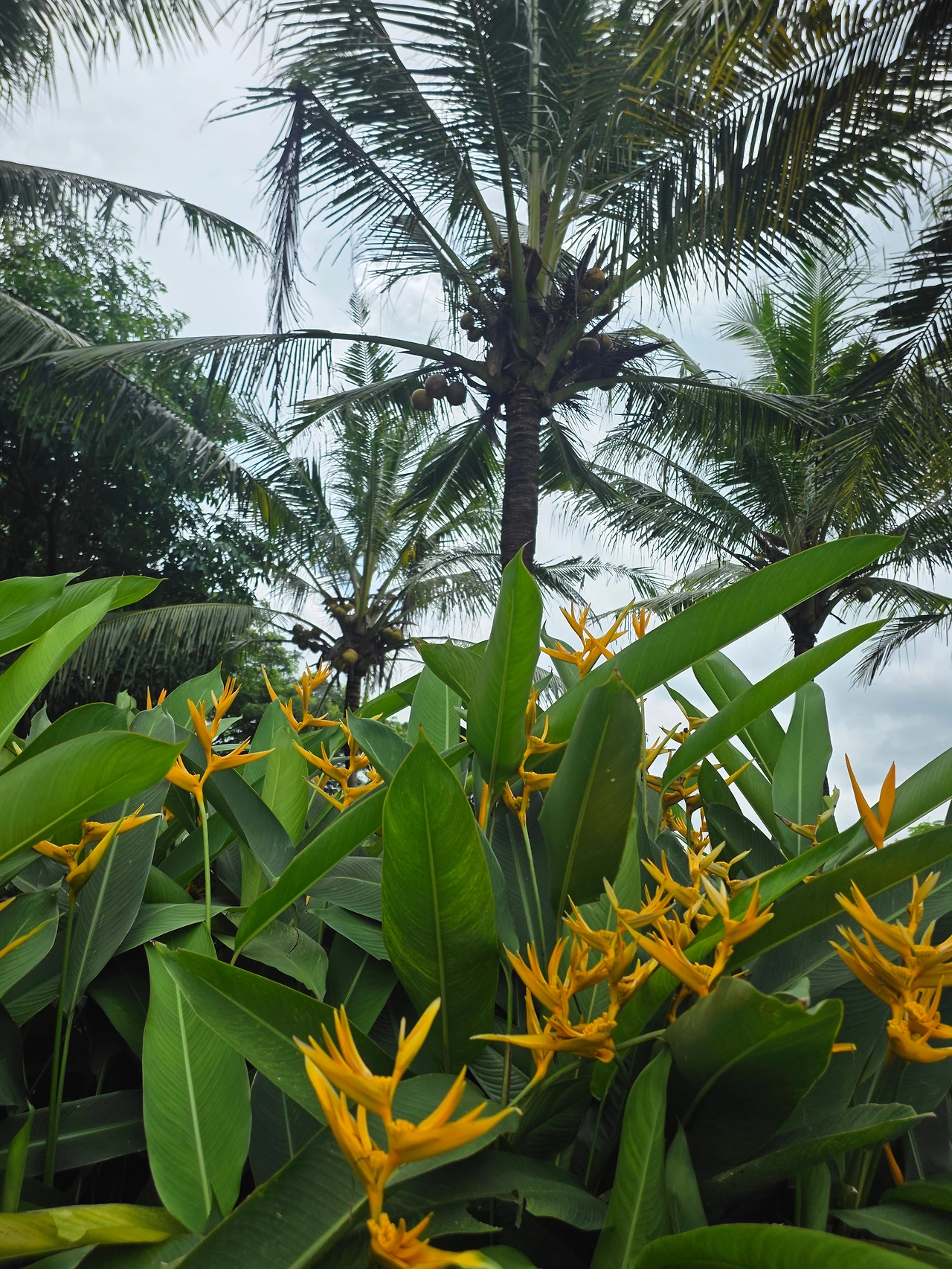 나의 집 근처에는 수영장이 있다. 주변에는 키가 큰 코코넛 나무가 몇 그루 있다. 아주 작은 열매 맺었다. 비가 내리면 비를 맞으며 빛을 내려주면 빛을 맞으며 흐린 날에는 흐린 하늘 아래 서있구나. 땅에 나무뿌리에는 서 영양분 받고 하늘 높은 줄 모르고 하늘을 향해 두 팔 벌려 받쳐 들고 밤에는 달빛, 별빛 맞으며 고유한 빛과 자연을 받아들이고 사람이 주는 양분받아먹으면서 코코넛 나무는 쑥국 쑥 자라고 작게만 맺었던 코코넛 나무 열매는 무럭무럭 둥근달처럼 동그랗고 크게 잘 자라서 땅 위에 자연 이들에게 자기에 에너지를 모두 나누어 준다.