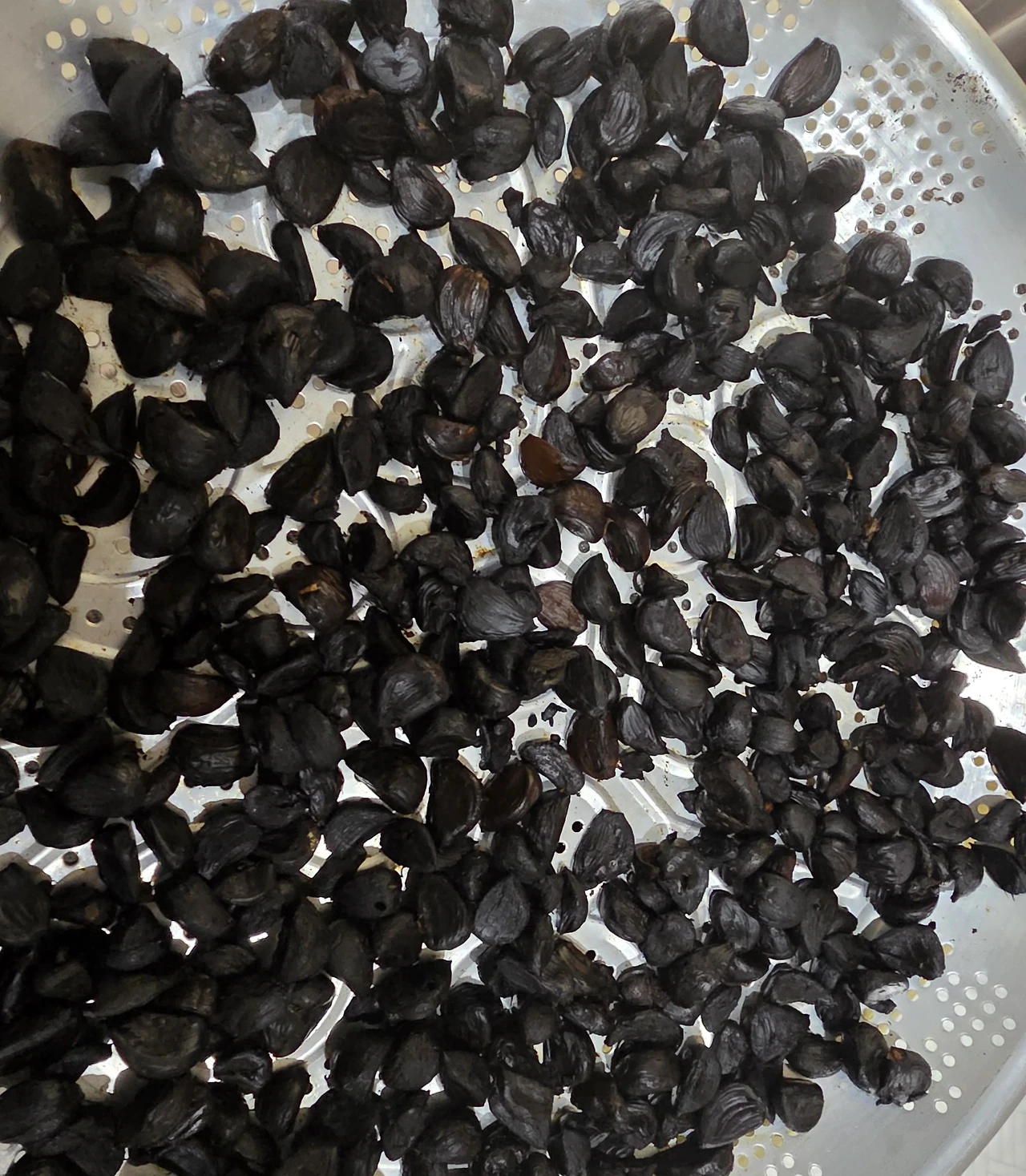지금 우기다 선풍기 바람에 밤새 말리고 예고 없이 내려주는 해님과 하루 말리고 아주 소중하게 조신하게 마늘 껍질을 벗기고 나면 까만 마늘이 이처럼 예쁘게 나온다