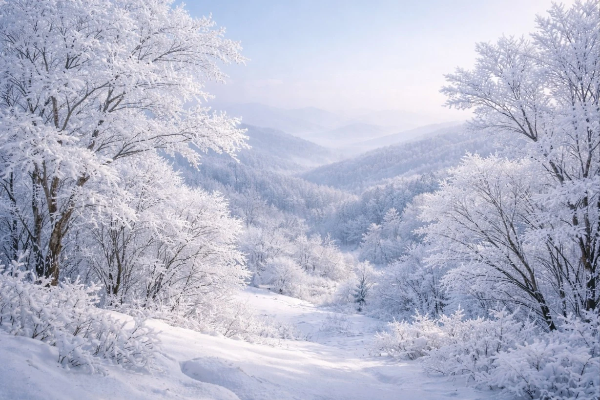 깊은 산 능선을 따라 펼쳐진 설원 위에 눈꽃이 피어 있었다. 꽃이라 부르기엔 너무 차갑고, 얼음이라 부르기엔 너무 따뜻한 풍경. 나뭇가지마다 하얀 눈이 소복히 내려앉아
