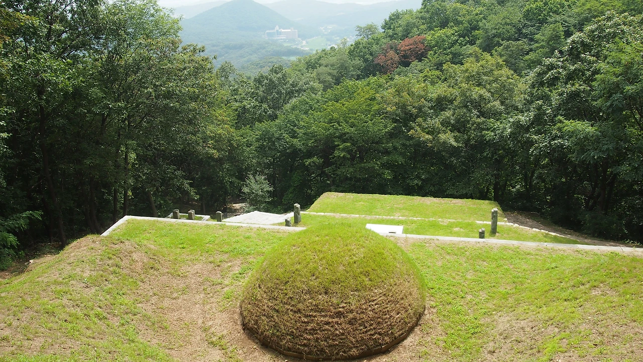 숲에 둘러싸인 비교적 안정되고 넓은 공간감의 쾌적함이 느껴진다. 봉분 주위의 석재의 절제와 결구의 간단함은 오히려 사무침과 위엄이 깃들어 보인다.