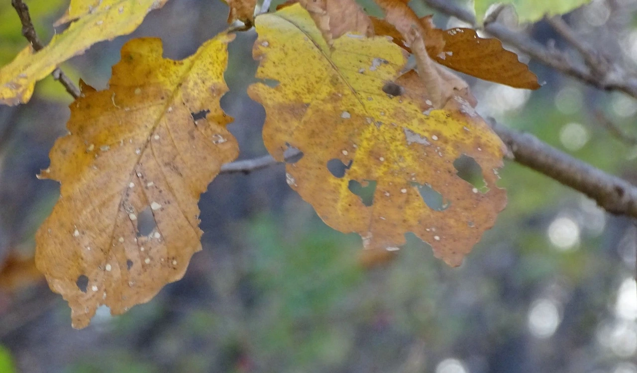 떡갈나무 잎에 벌레구멍이 뚫려서