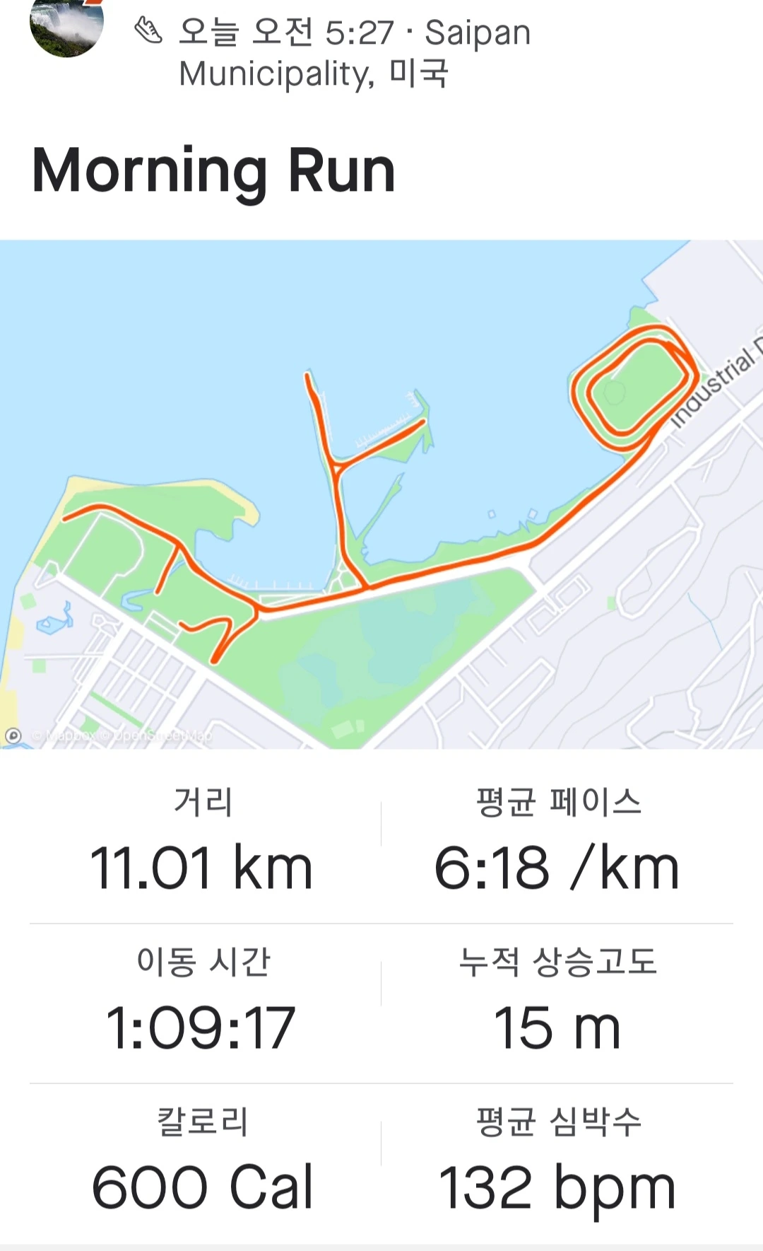즐거웠던, 조용한 이른 아침시간의 11킬로 조깅을 마친 후에는