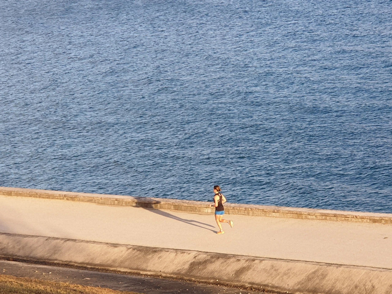 저 멀리, 나처럼 아침 조깅을 즐기는 또 한 명의 러너가 보인다.