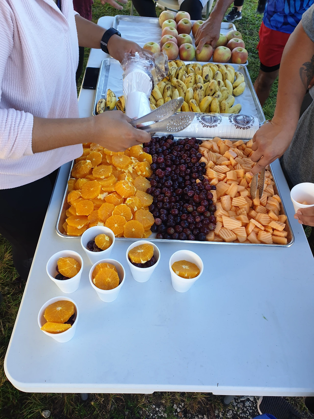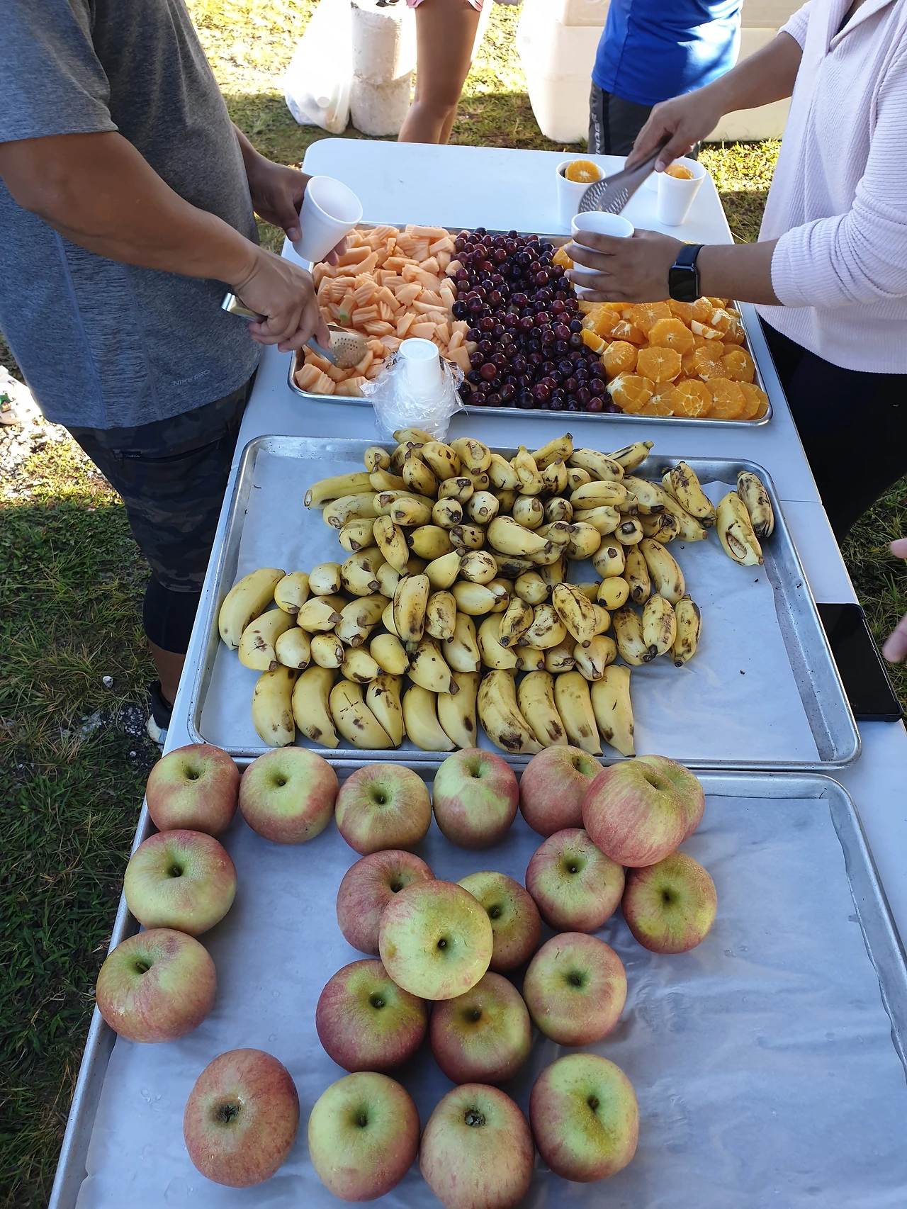 대회장 한쪽에는 사과, 바나나, 오렌지, 포도 등 다양한 과일과 시원한 음료수가 제공되고 있었고, 줄줄 흐르는 땀도 식히고 한숨 돌리고 난 후, 참가자들과 재잘재잘 수다를 떨며 신선한 과일 타임을 가졌다.