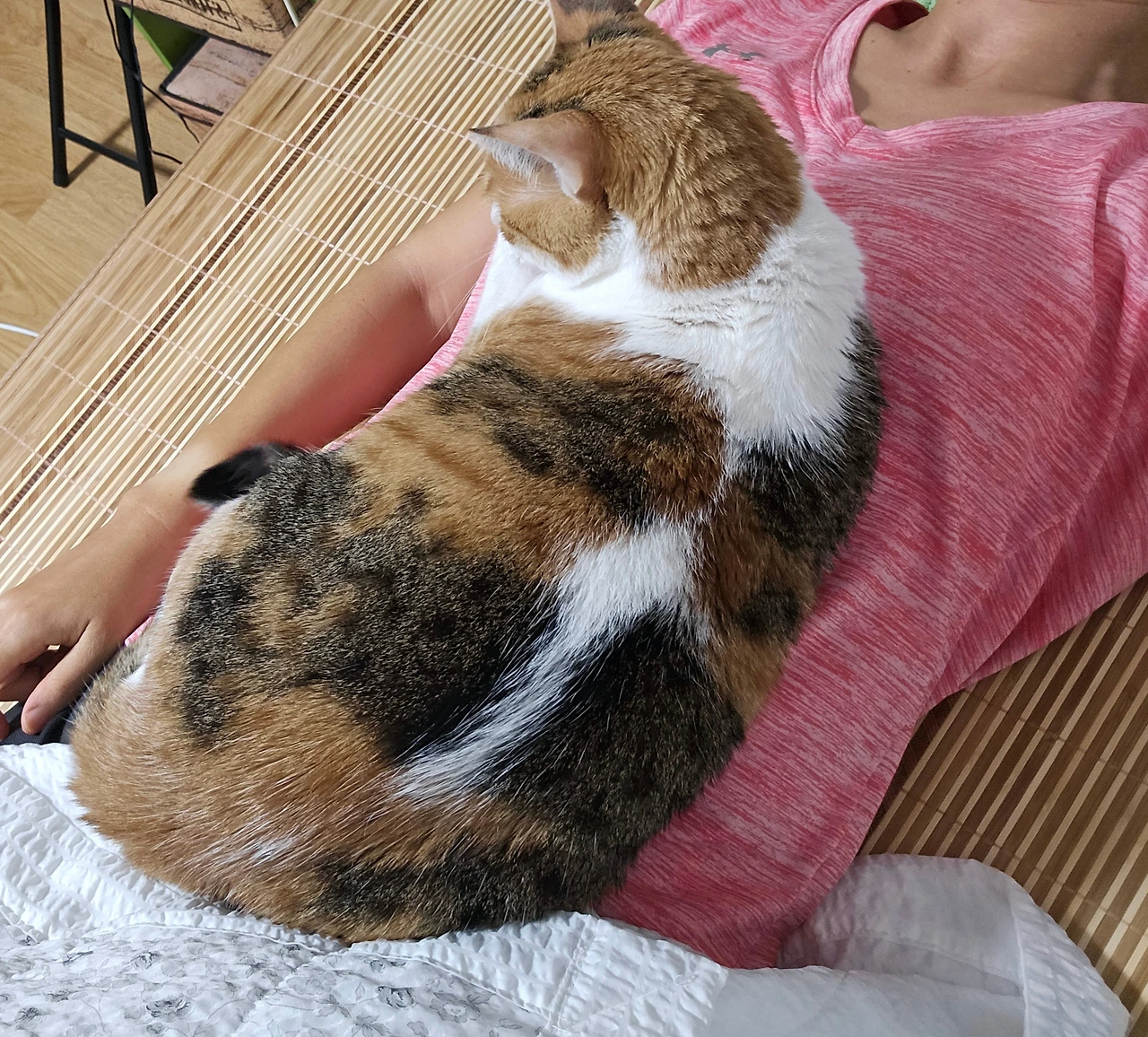 꽤 무게가 나가는 녀석의 몸은 내 배를 적당히 지압하듯 압박하기에 적당했고, 녀석의 따뜻한 온기는 적외선 온열 치료기나 핫팩 부럽지 않은 온도로 경직된 내 위장을 풀어주고 있었다.