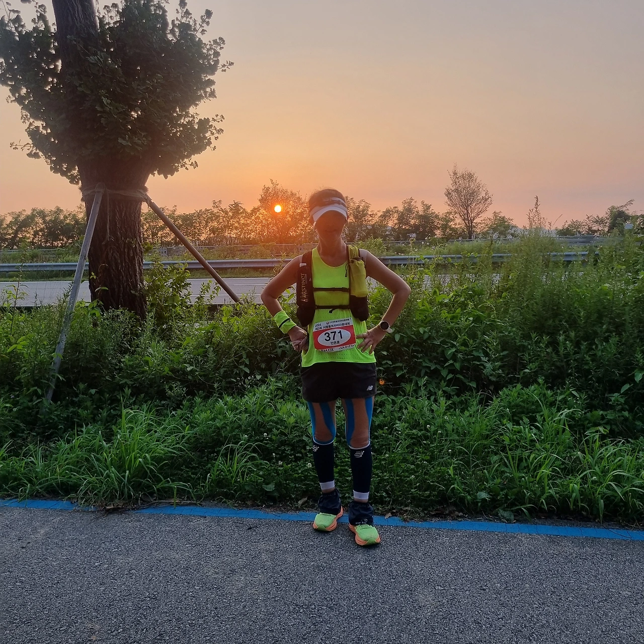 하늘을 온통 붉게 물들이고 뉘엿뉘엿 아쉬운 듯 넘어가는 석양을 바라보며 묵묵히 달리던 순간, 내가 농촌의 대표적인 냄새라고 자부라도 하듯 깊고 진하게 풍겨오는 거름 내음을 맡으며 비닐하우스들이 옹기종기 모여있는 어느 시골 마을 길을 지나가던 일, 식사 제공을 해 주는 52km 지점에서 그래도 먹고살겠다고 무슨 맛인지도 모르겠는 밥이 말아진 멀건 북엇국을 야무지게 먹던 일, 같은 목적으로 모인 사람들끼리 서로 통성명을 하고 두런두런 이야기를 나누면서 밤새 뛰다 걷다를 하다가 때로는 편의점에 들러 시원한 캔맥주나 커피를 즐기던 여유, 해가 떨어지고 밤이 됐는데도 바람 한 점 없이 더웠던 밤공기 탓에, 미지근한 아리수 물로 세수를 하며 열을 식히던 일, 영원히 끝날 것 같지 않던 밤이 지나고 이번엔 붉게 물든 하늘의 일출을 감상하며, 이미 지칠 대로 지쳐버린 심신을 추스르던 순간...