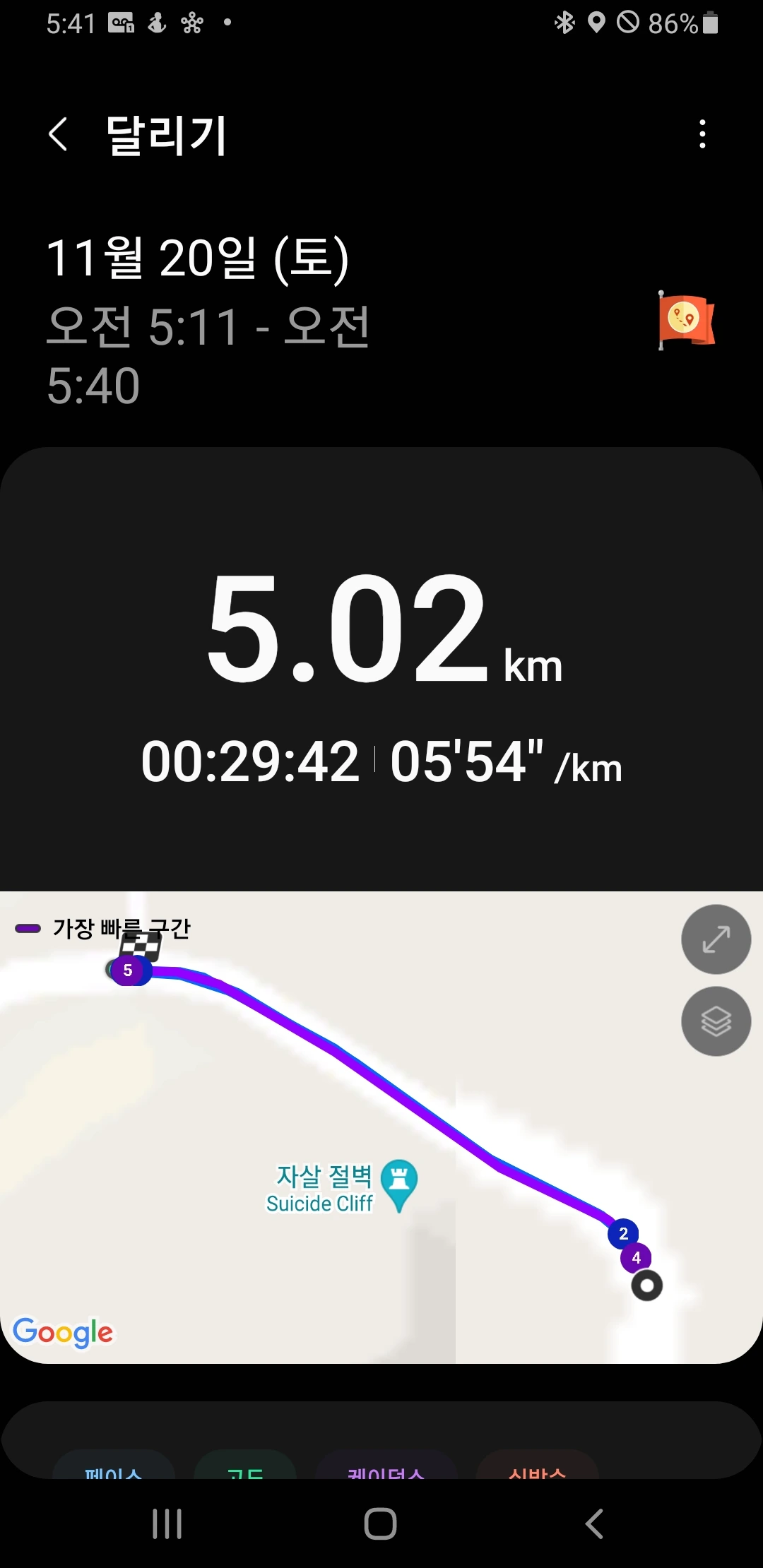 가쁜 숨을 몰아쉬며 5킬로 거리를