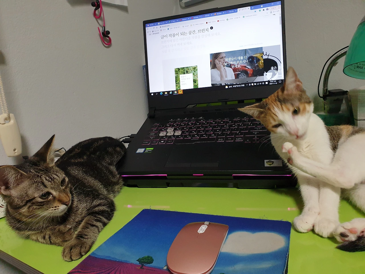 온 집안이 자기 영역이라고 여기는 두 냥이들의 발길이 닿지 않는 곳은 없다.