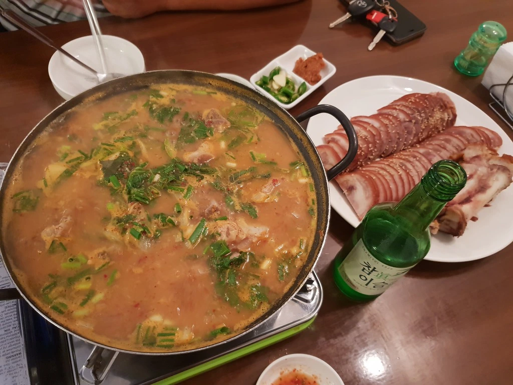 칼칼한 감자탕과 소주가 하루의 고단함을 씻어 내린다.