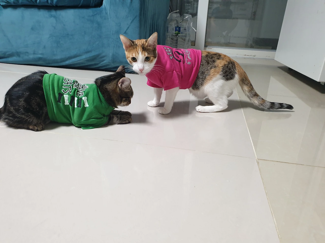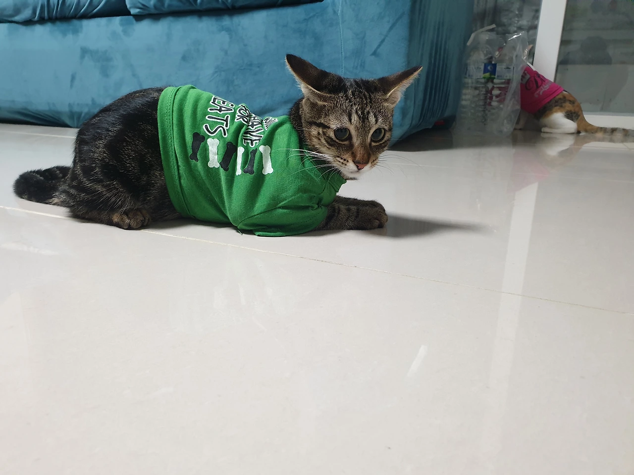 얼떨결에 난생처음으로 옷을 입게 된 녀석들은 냥이둥절 해 있고