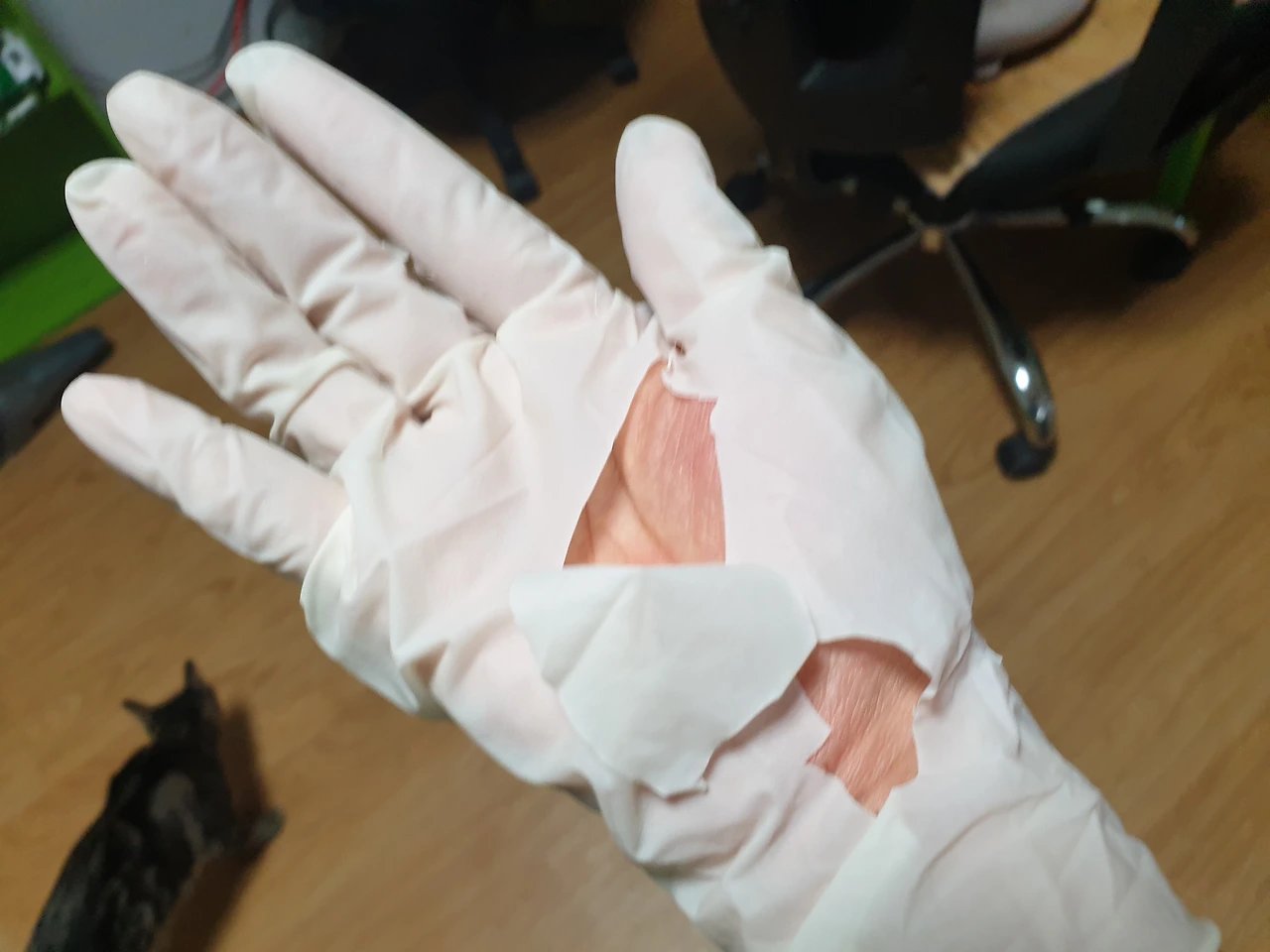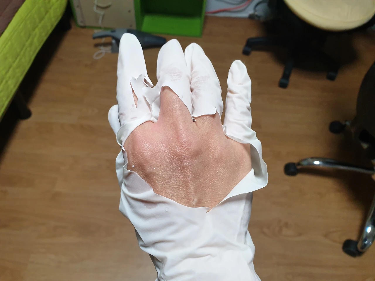 사태의 심각성이 고스란히 남은 상처와 찢어진 장갑