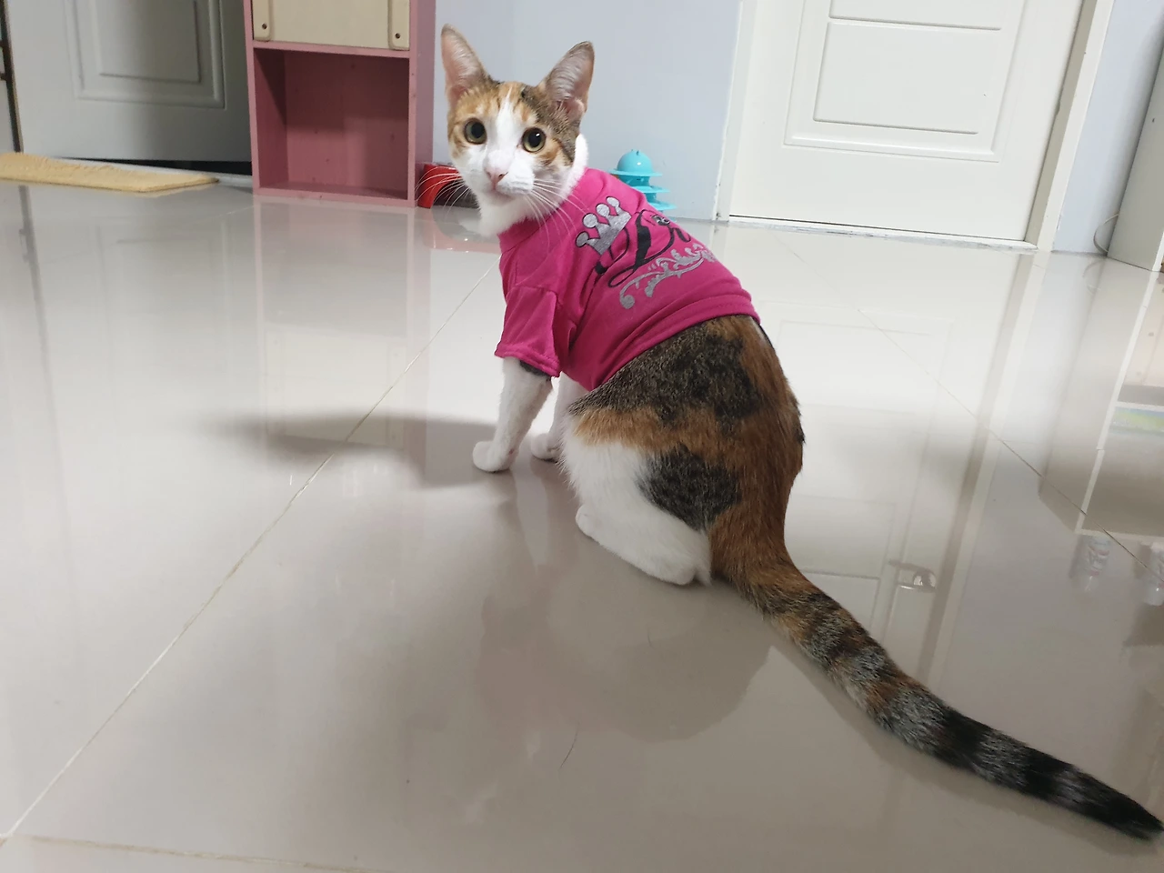 자꾸 옷 위를 핥아대며 갑갑해하는 표정이 역력했다.