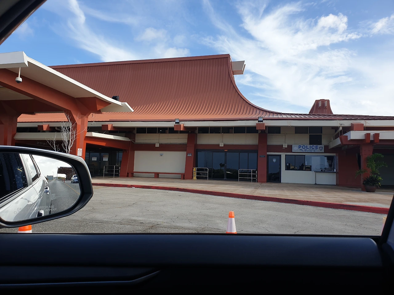 차 창밖으로 보이는 조용하고 한적한 사이판 국제공항