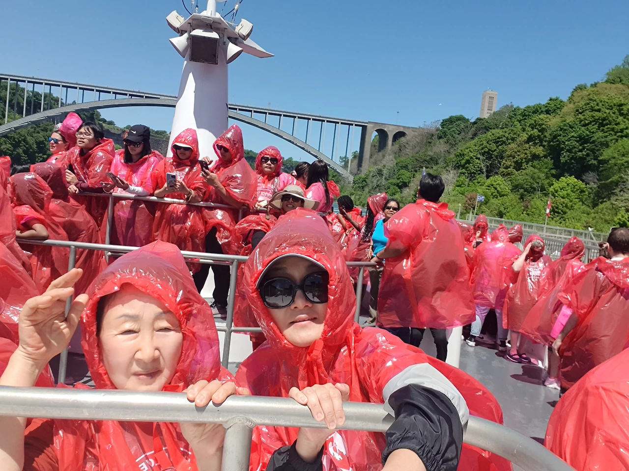 빨간 우비를 입고 승선하는 유람선은 캐나다에서 운영하는 배다.