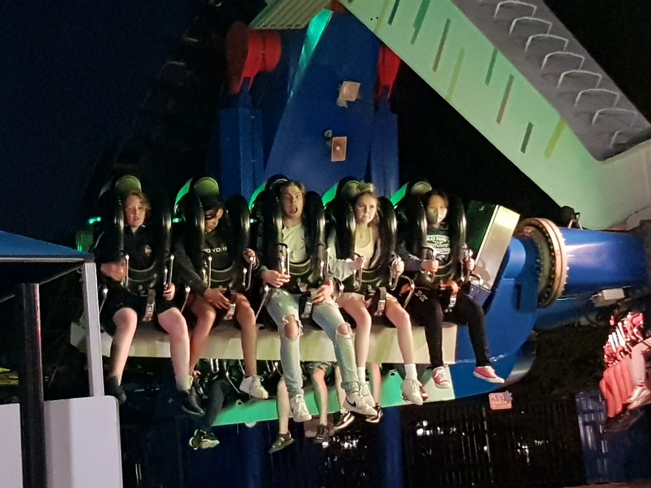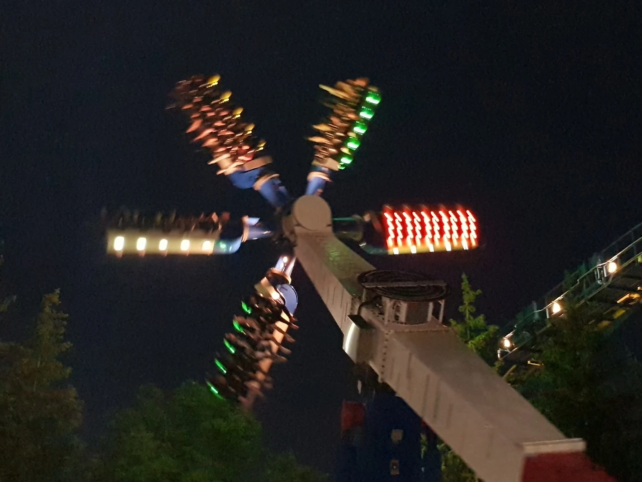 아찔한 높이에서 수직 낙하하는 각종 놀이기구들.