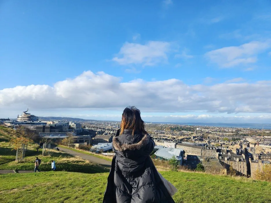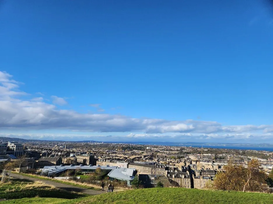 속으로 외치고 힘차게 가파른 계단을 한 발 한 발 내디뎠다. 정상에 도달하고 별생각 없이 몇 발자국 걸었는데 탄성이 절로 나왔다. 에든버러의 지도가 눈앞에 펼쳐졌다. 그리고 지도의 끝에 새로운 시작이 보였다. 멀리서 파란색 평야, 바다가 하늘과 맞닿아 있었다. 바다를 볼 줄은 상상도 못했다. 눈부신 전망에 배고픔도, 피곤함도 전부 사라졌다.