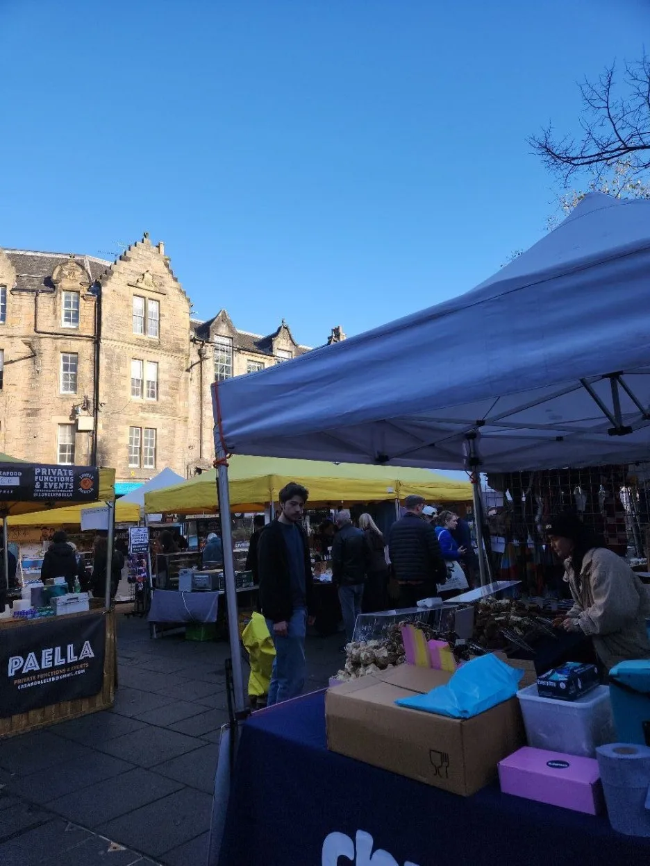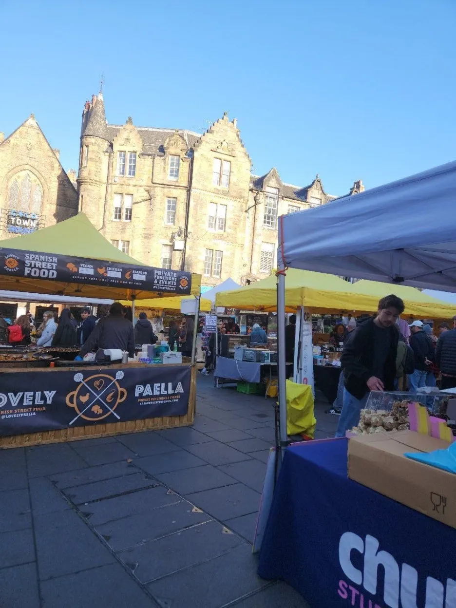 어제 젤라또를 먹었던 장소를 다시 마주했다. 어제와 확연히 다른 점이 2가지였다. 먼저 어제의 회색빛 하늘 위 파란색이 진하게 덧칠되어 날씨가 티 없이 맑았다. 두 번째, 마켓을 열고 있었다. 시간도 많겠다, 무엇을 파는지 둘러봤다. 사고 싶은 물건이나 음식은 없었지만 주말 에든버러 시장을 경험할 수 있어 아침부터 기분이 상쾌했다.