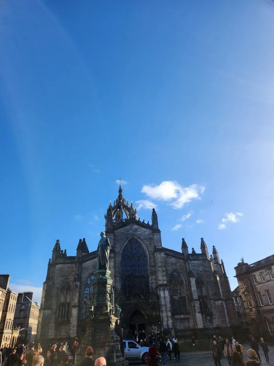 첫째 날 못 갔던 St. Giles Cathedral을 찾던 중 Victoria Street를 지나치게 되었다. 해리 포터에서 마법사들의 쇼핑 거리인 Diagon Alley의 영감이 된 거리라고 한다. 에든버러라고 믿기지 않을 형형색색의 건물들이 길게 늘어섰다. 푸른 하늘과 완벽한 호흡을 이룬 풍경이었다.